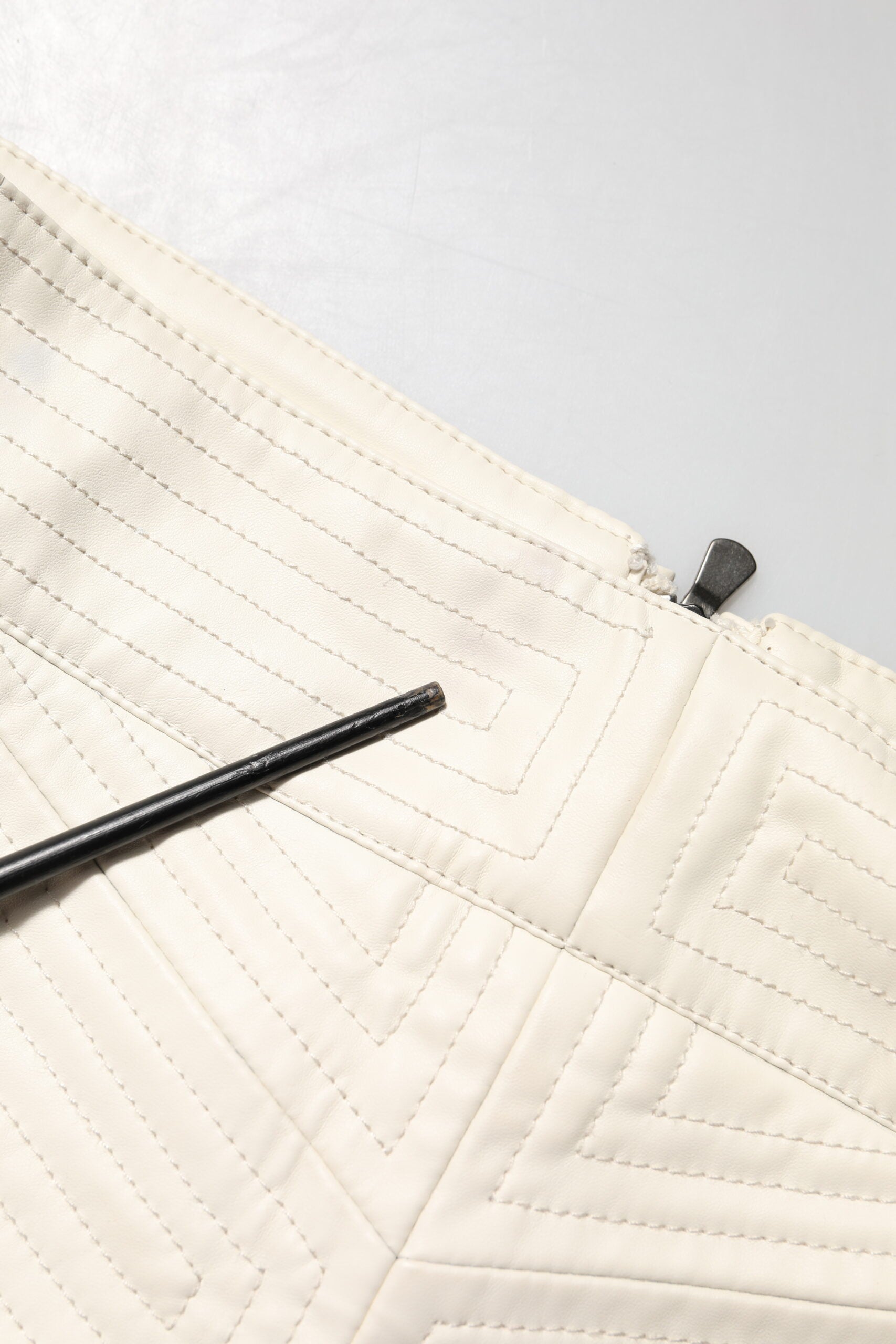 Beige Faux Leather Quilted Mini High Waist Women Skirt