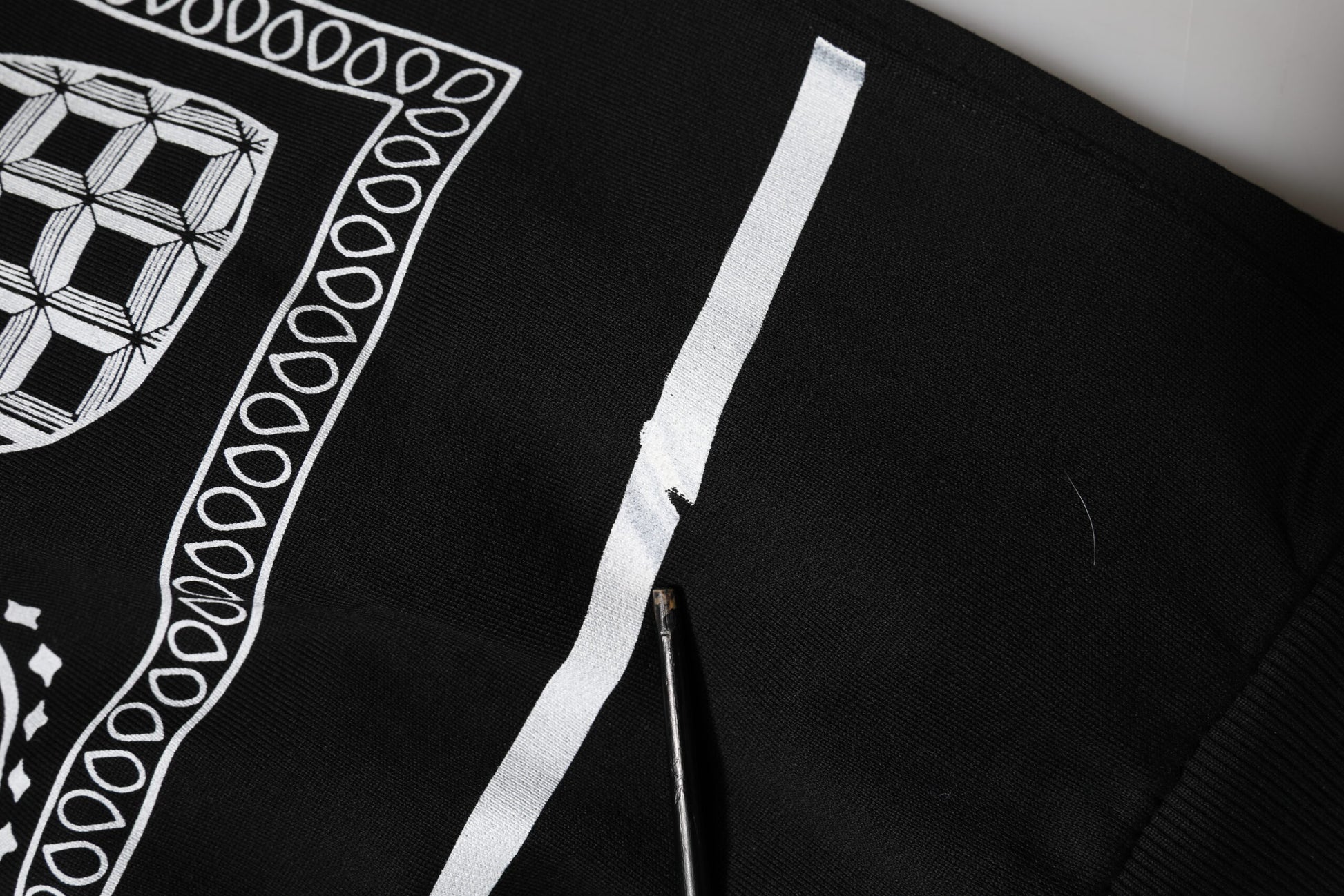 This item has a minor defect, there are print discolorations on the front side and back hood (see pictures for details).