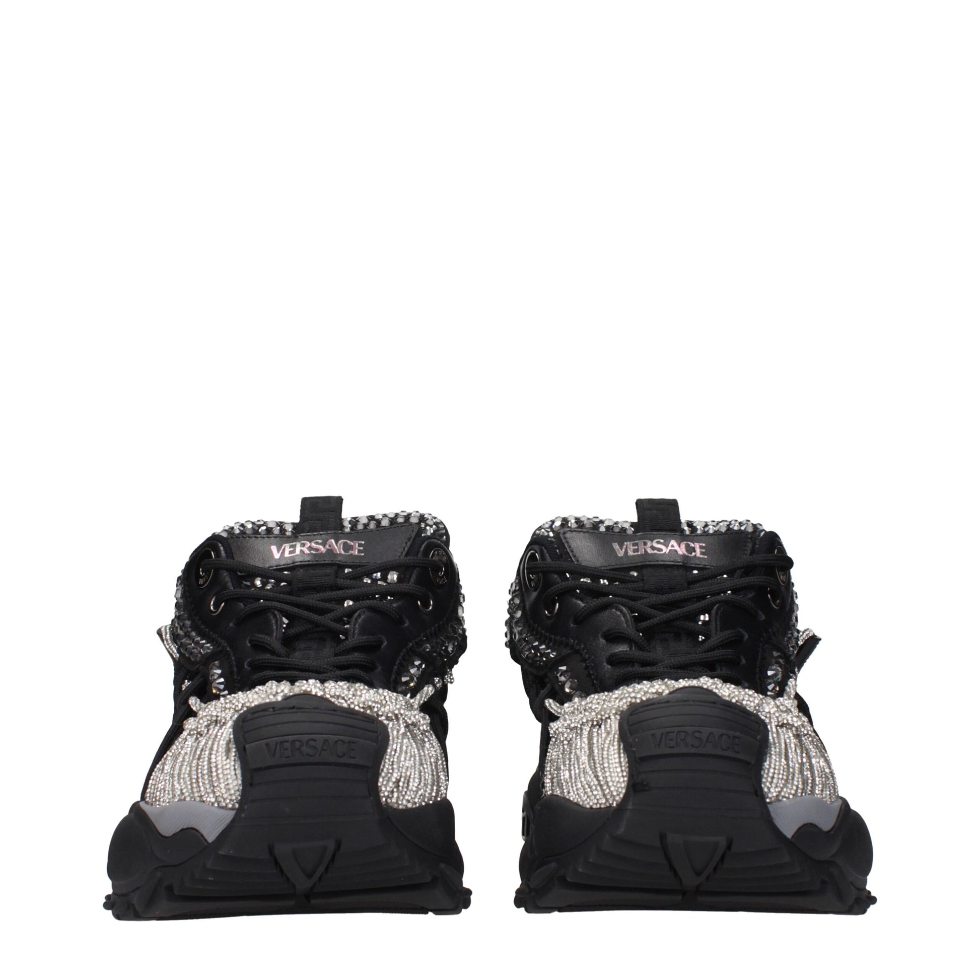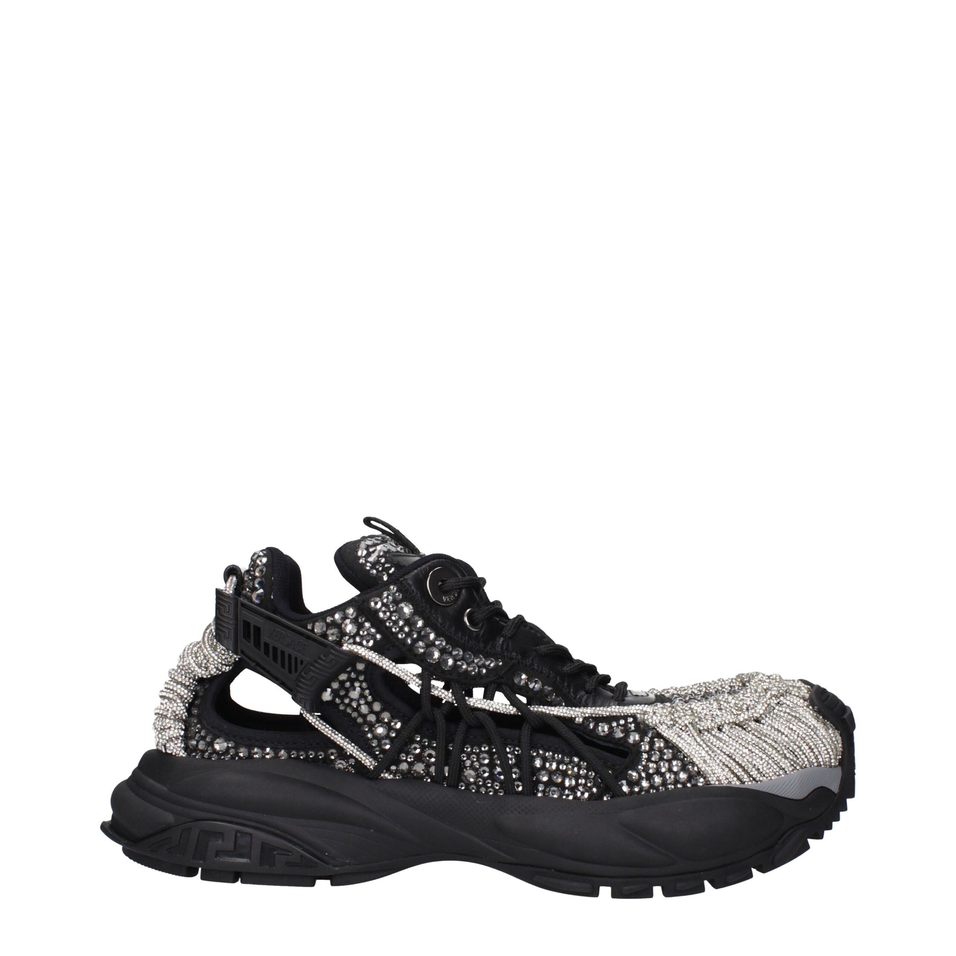 The product with MPN 10167111A121671B00E and code F84195 fabric in black is a sneakers designed by Versace. It has features like front logo, side logo.