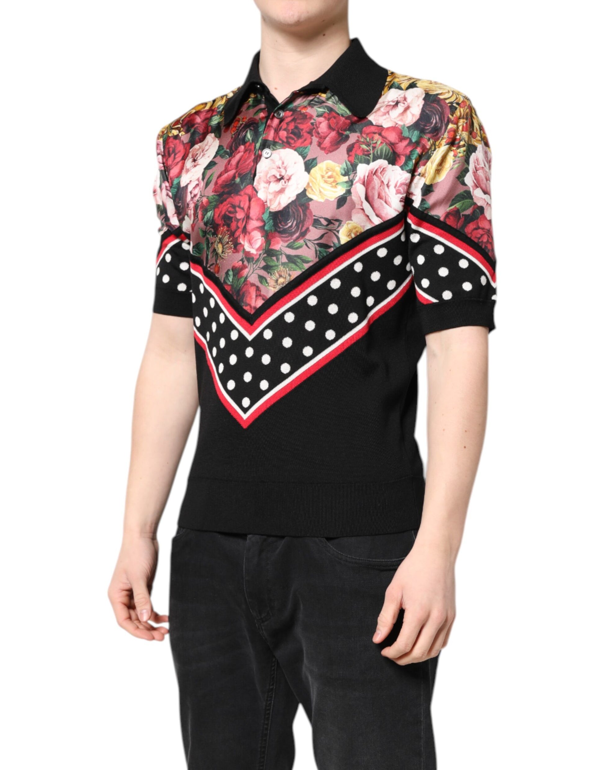 Gorgeous brand new with tags 100% Authentic Dolce & Gabbana t-shirt features a collared and short sleeves with floral print.