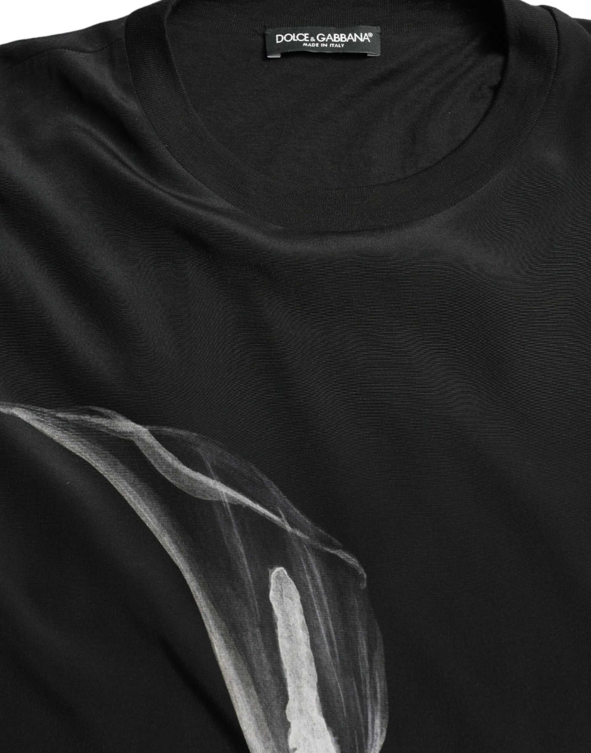 Dolce & Gabbana Black Floral Print Crewneck Pullover Sweater