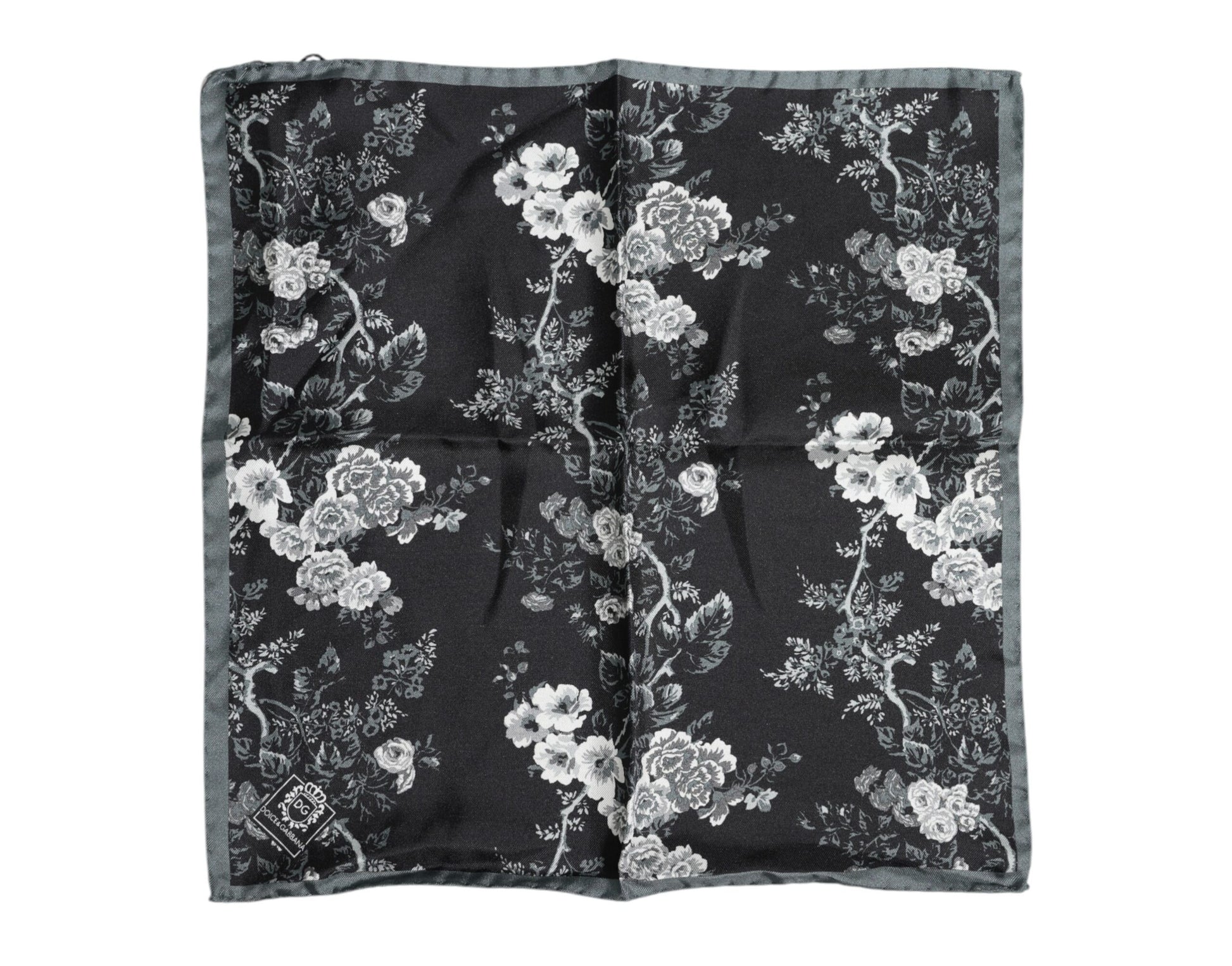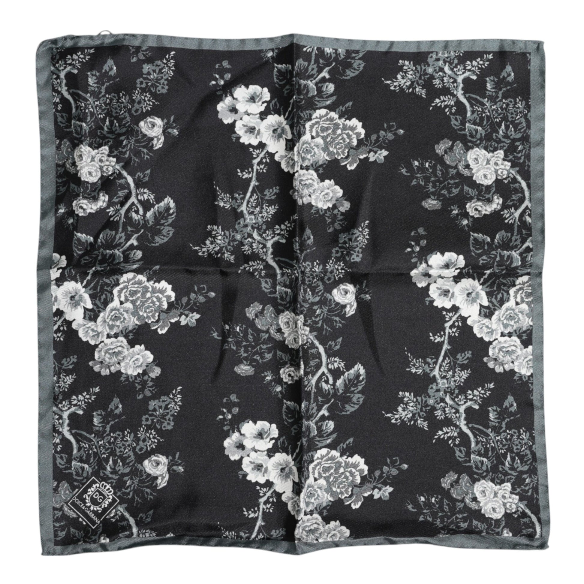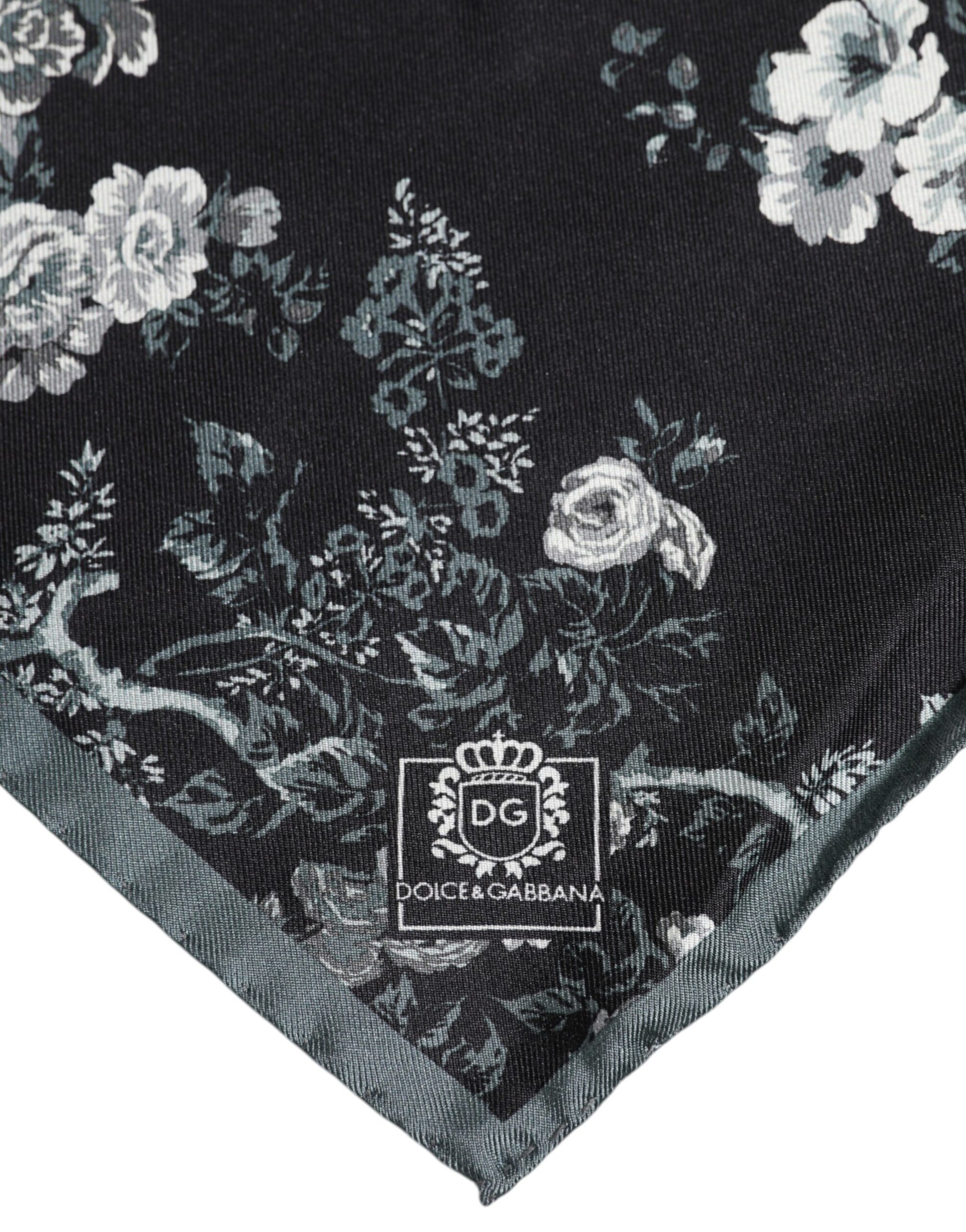 Black Floral Silk Square Foulard Scarf
