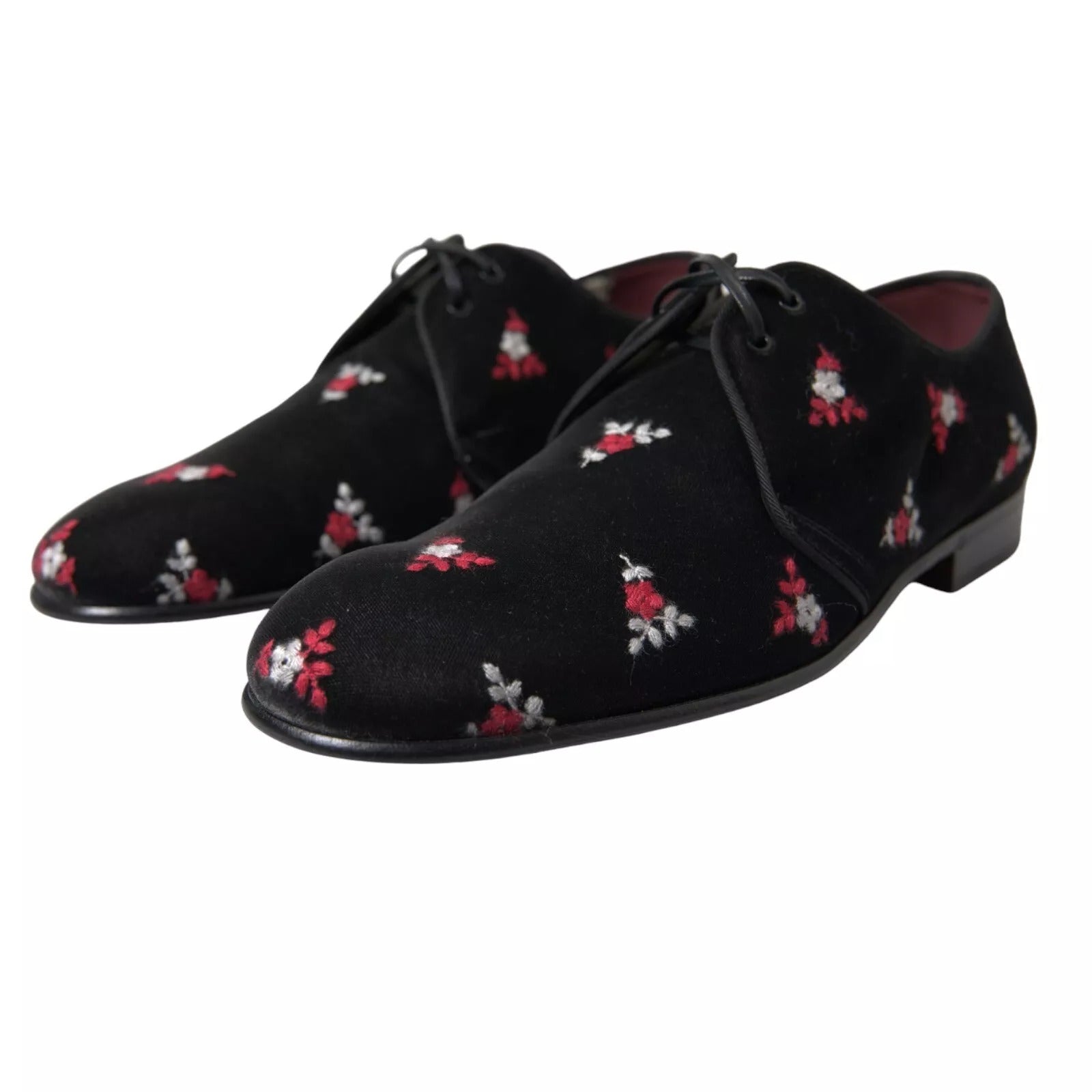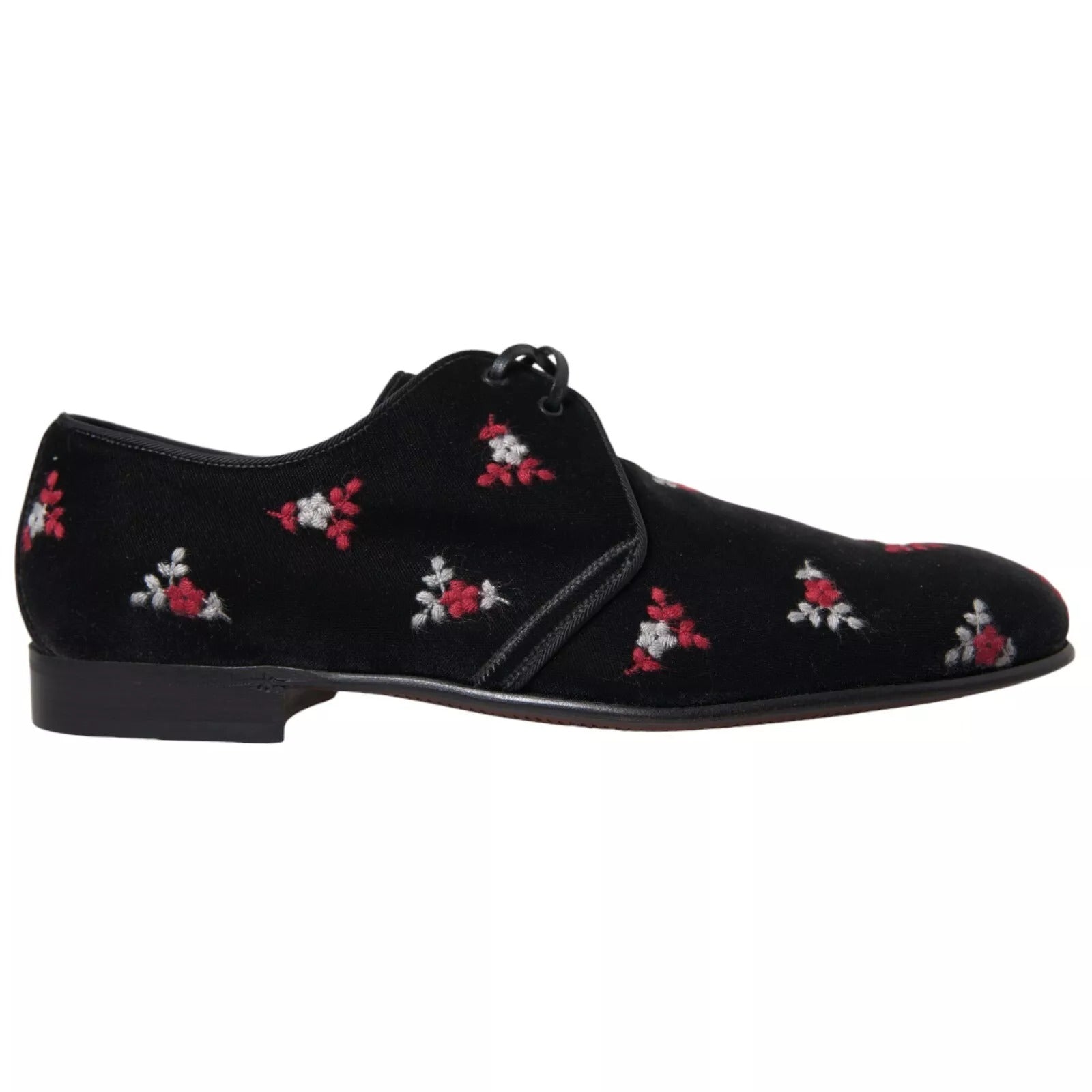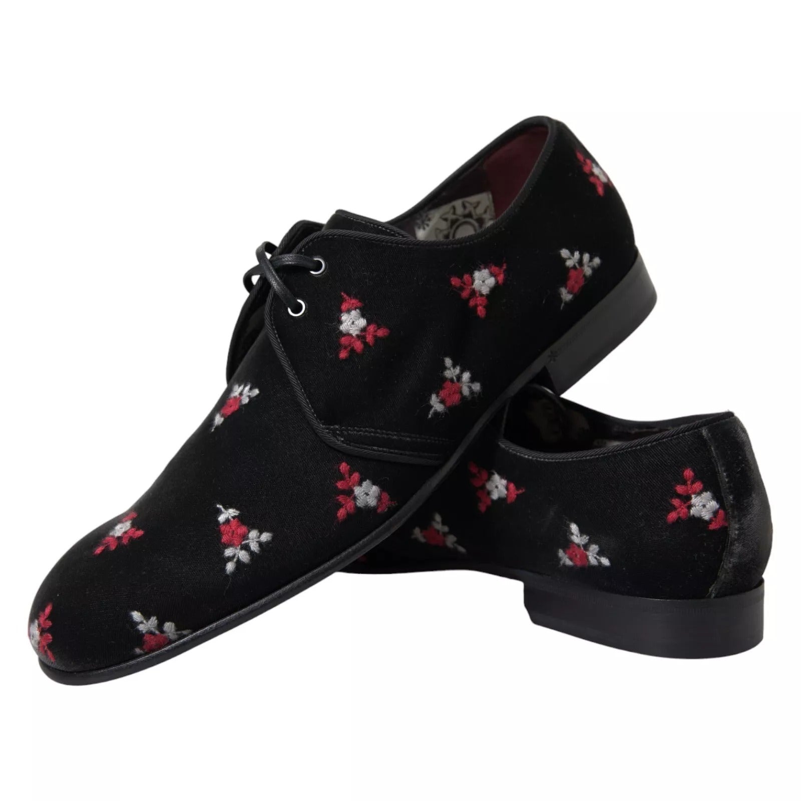 Gorgeous brand new with tags, 100% Authentic Dolce & Gabbana black velvet with floral embroidered dress formal laceup shoes.