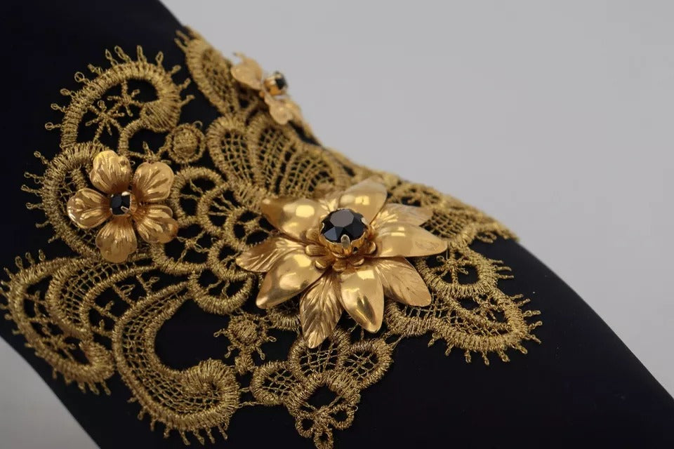 Gorgeous, 100% Authentic Dolce & Gabbana Woman’s black with gold embroidery slip on Boots.