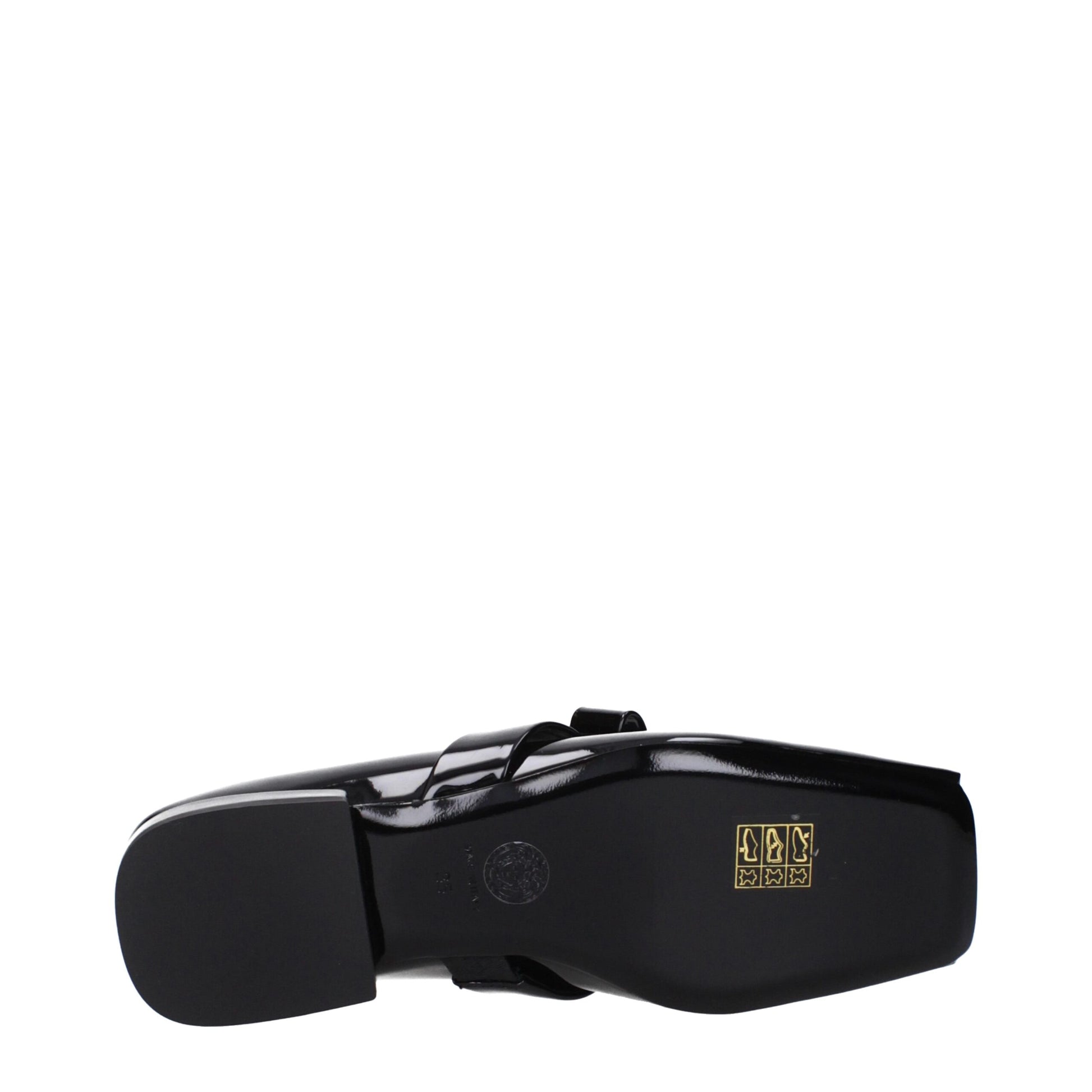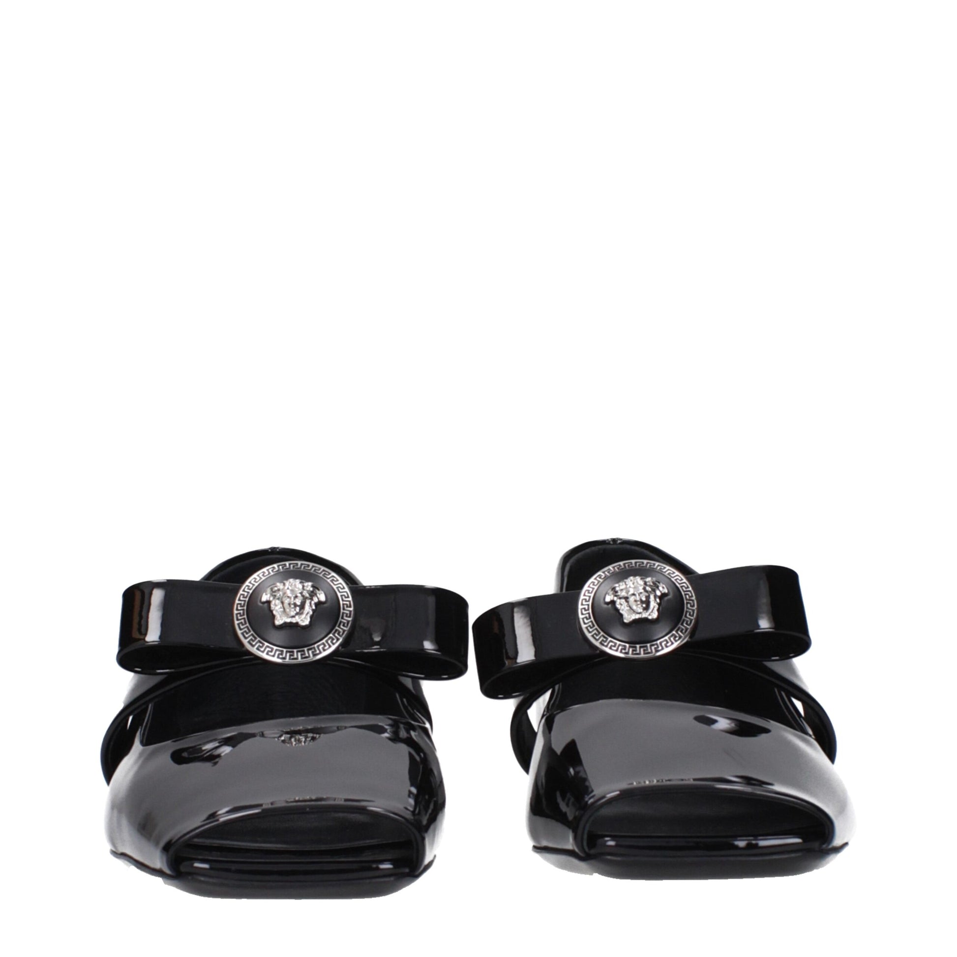 The product with MPN 1014359D2VE1B00P and code F83519 patent leather in black is a ballet flats designed by Versace. It has features like front detail.