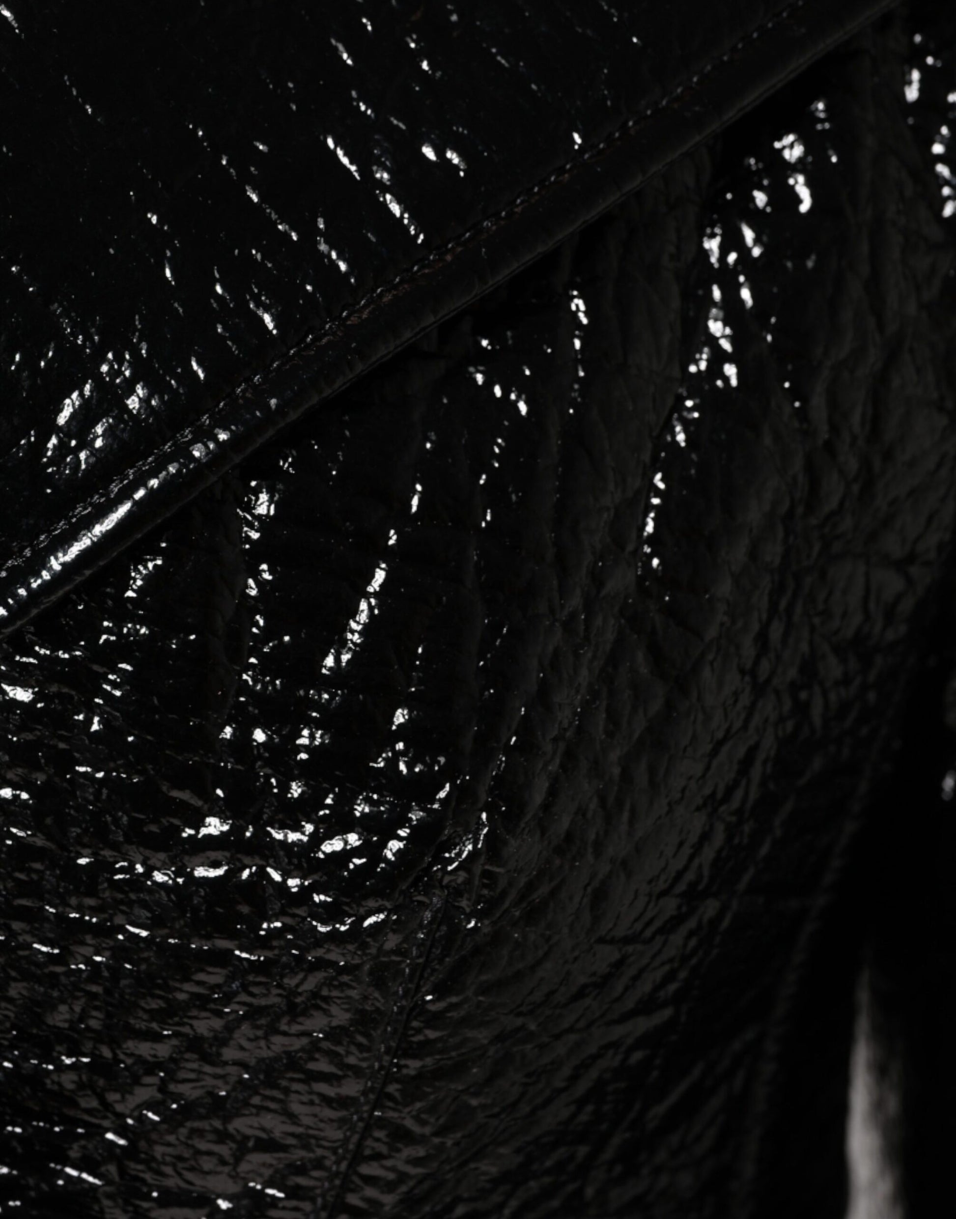 Dolce & Gabbana Black Leather Cropped Long Sleeve Coat Jacket