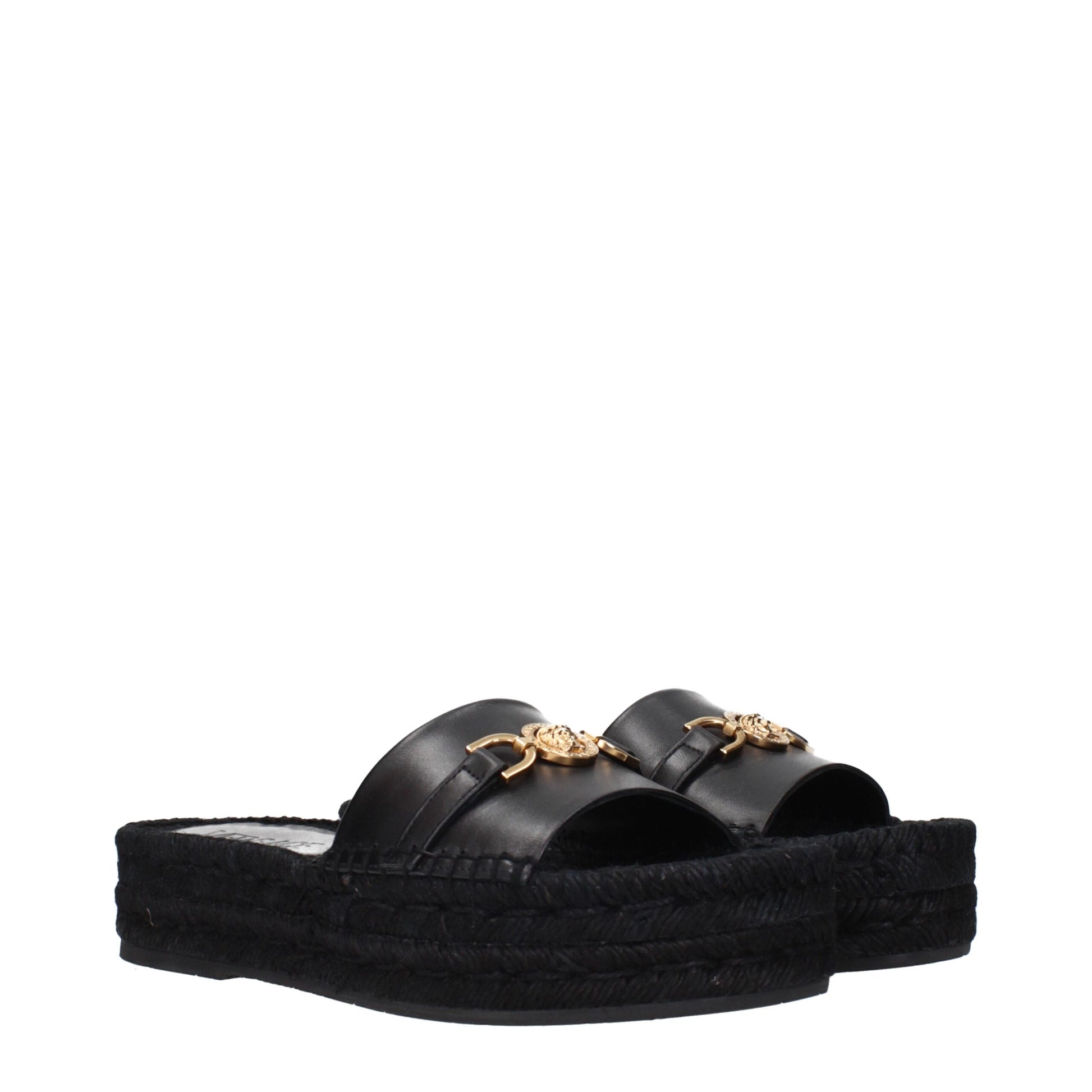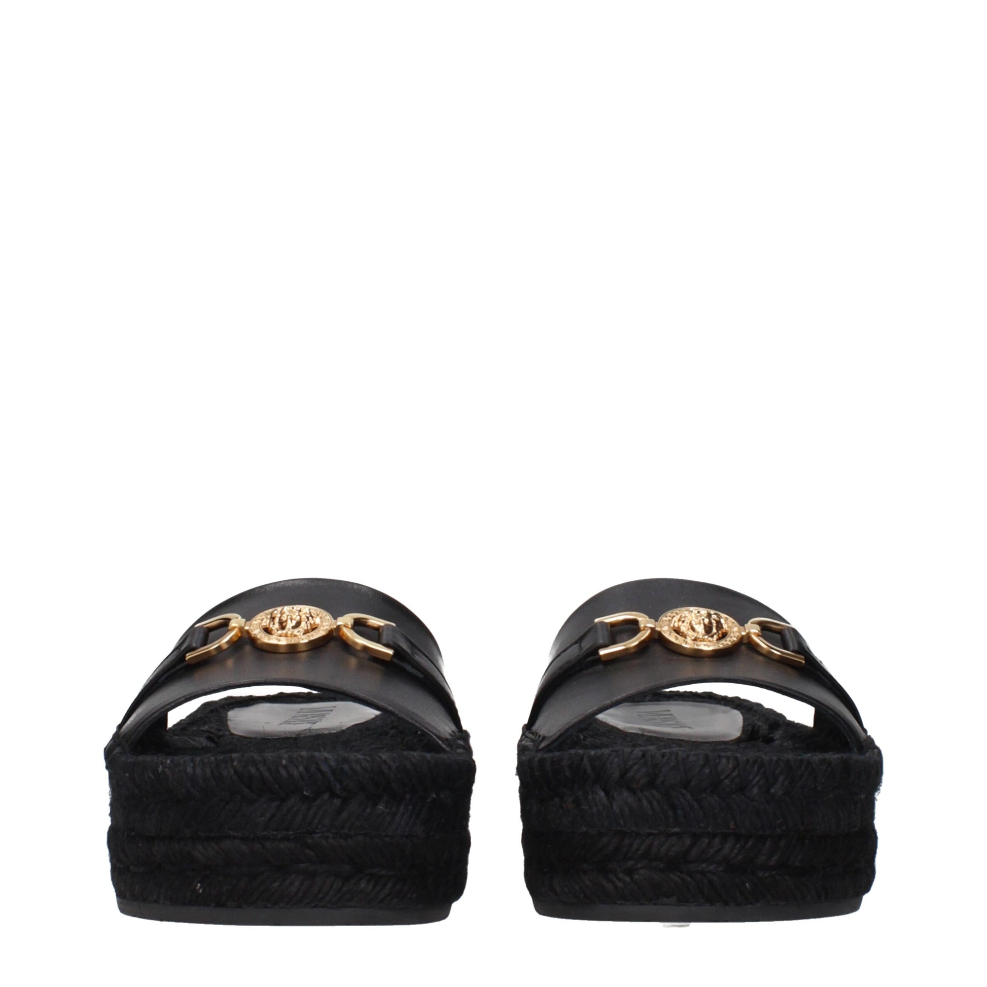 The product with MPN 1016050DVT2P1B00V and code F84169 leather in black is a slippers and clogs designed by Versace. It has features like front detail.