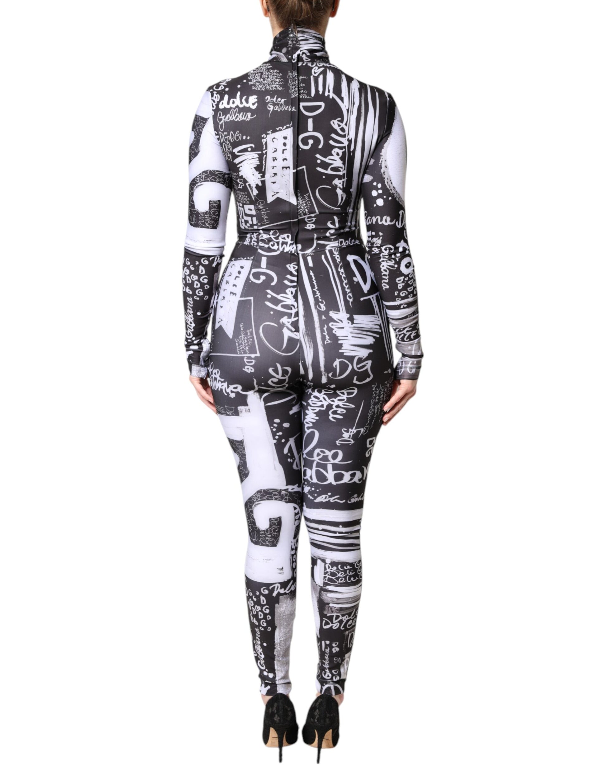 Black Logo Turtleneck Bodycon Jumpsuit Dress