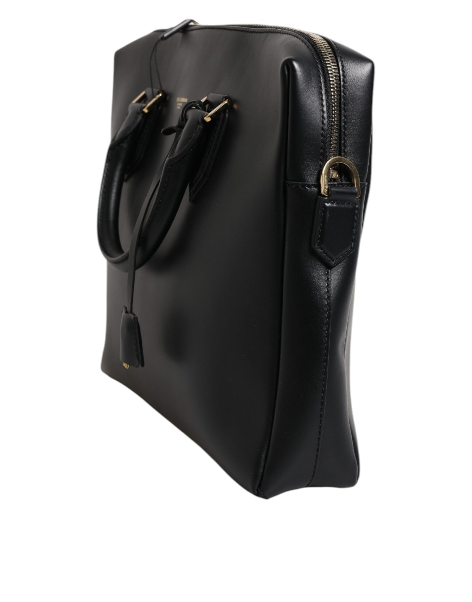 Black Smooth Leather Logo Printed Monreale Briefcase Bag