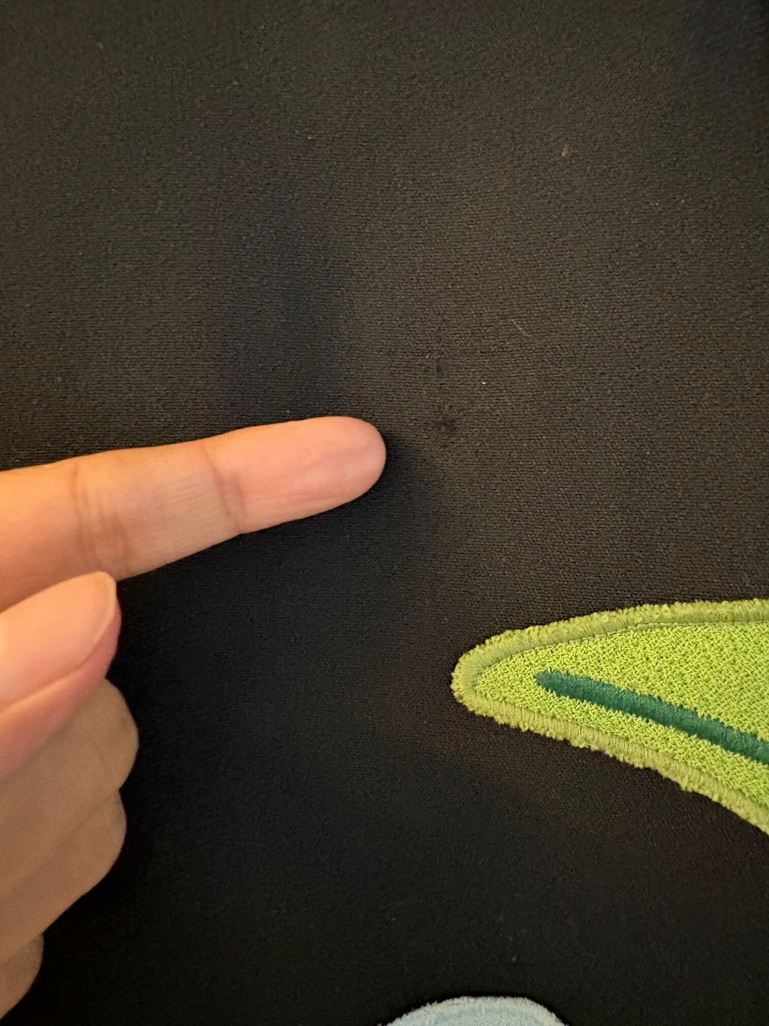 This item has a minor defect, there are pulled threads on the back side (see pictures for details).