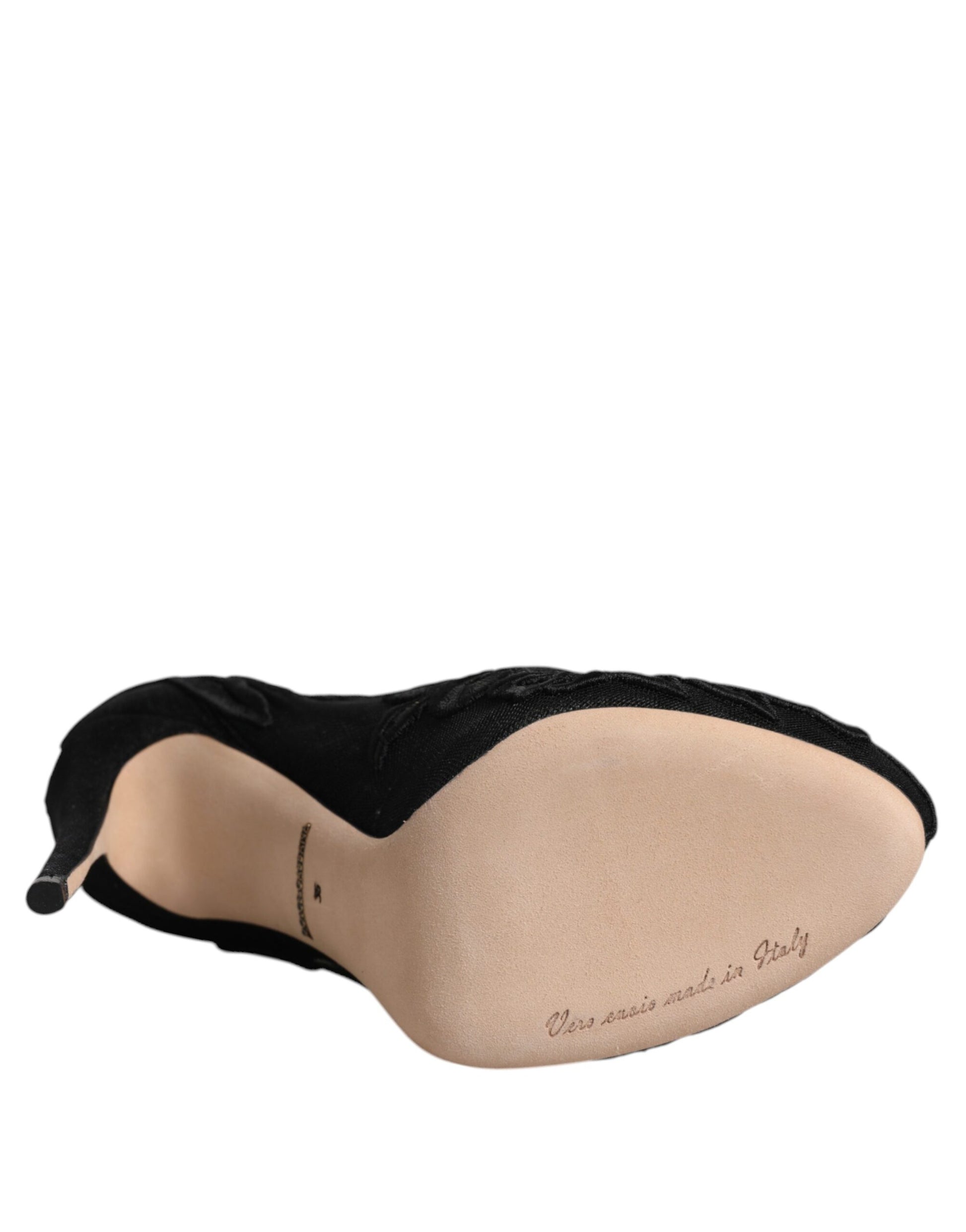 Dolce & Gabbana Black Tulle Stretch Heels Mid Calf Boots Shoes
