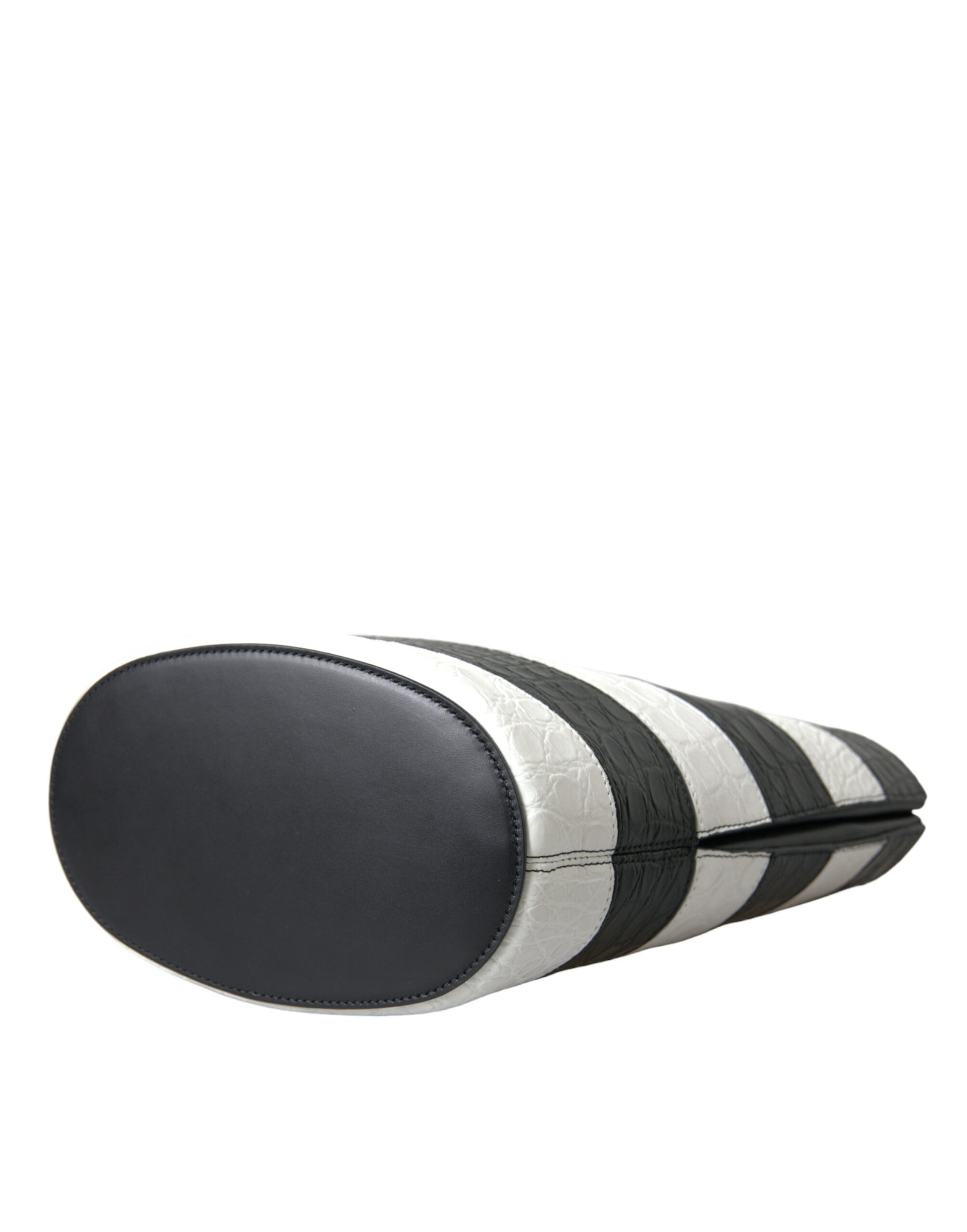 Black White Striped Exotic Skin Leather Maxi Bucket Tote Bag
