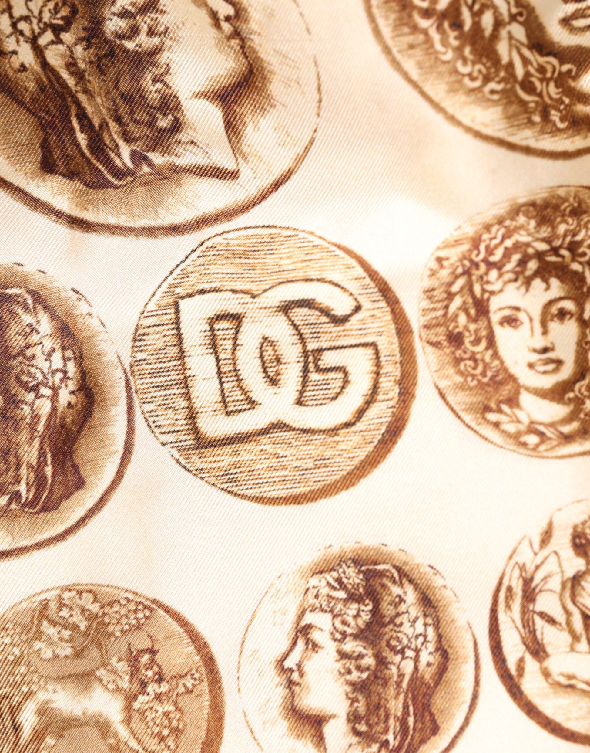 Dolce & Gabbana Brown Ancient Coin Print Silk Shorts Swimwear