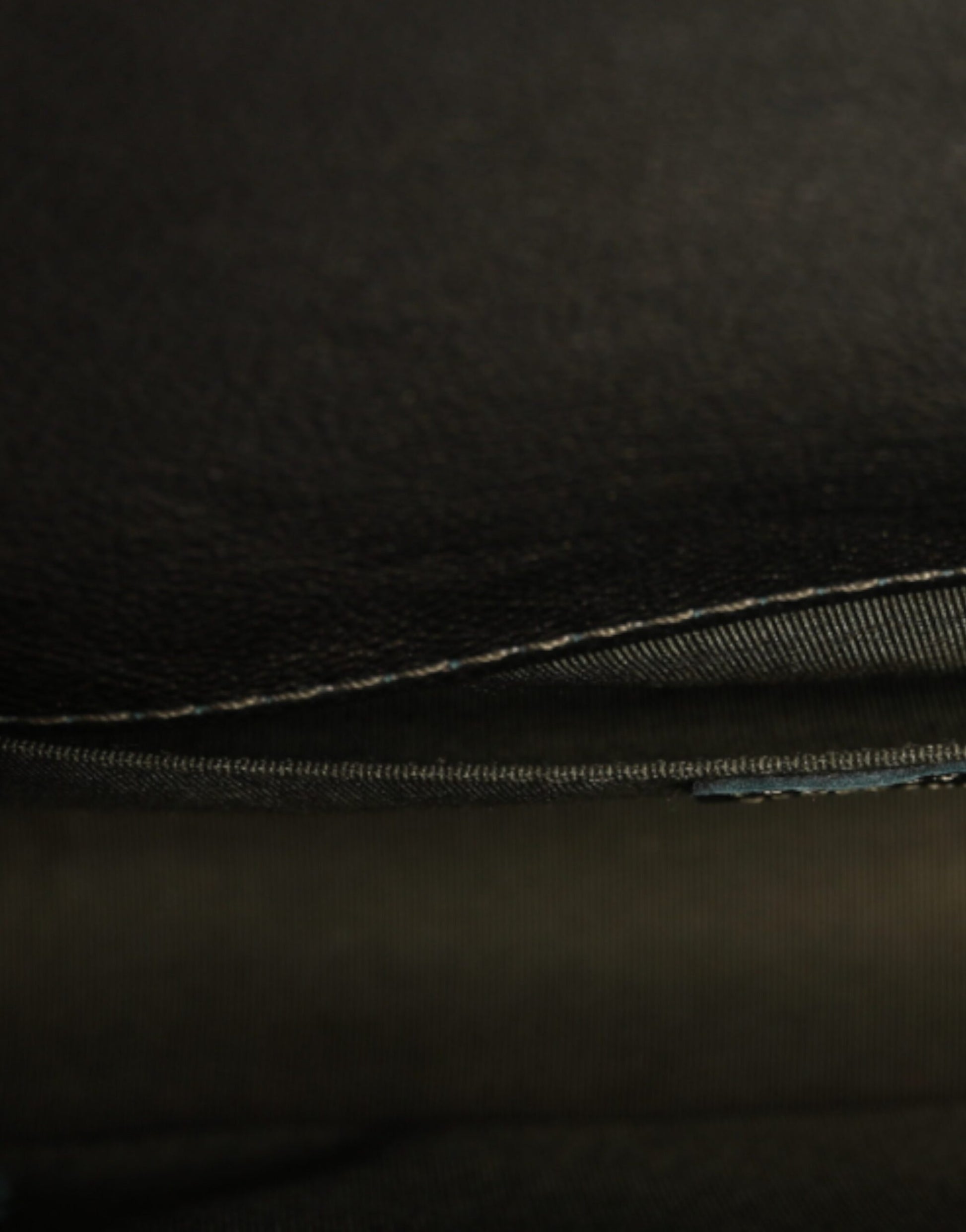 Dark Green Leather Shoulder Bag Gray Metal Purse Bag
