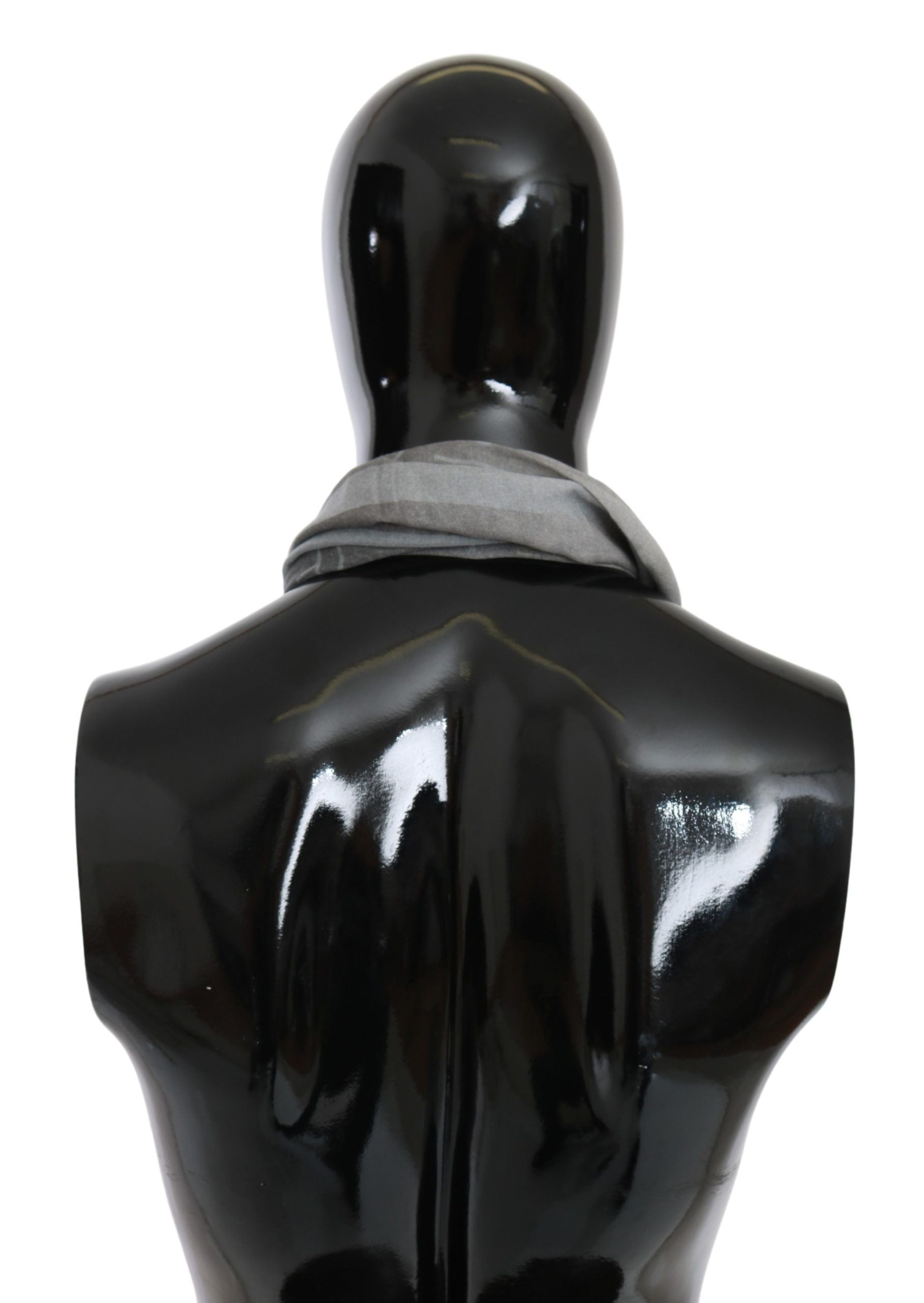 GF Ferre Gray Wool Viscose Foulard Patterned Branded Scarf