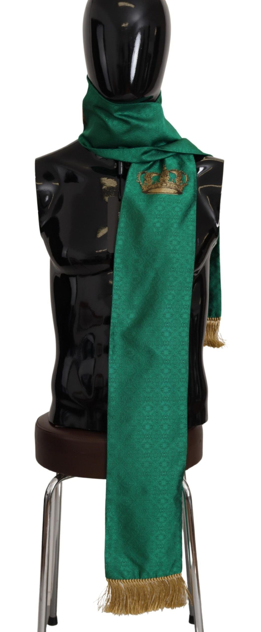 Dolce & Gabbana Green Crown Embroidered Shawl Fringe Blend Silk