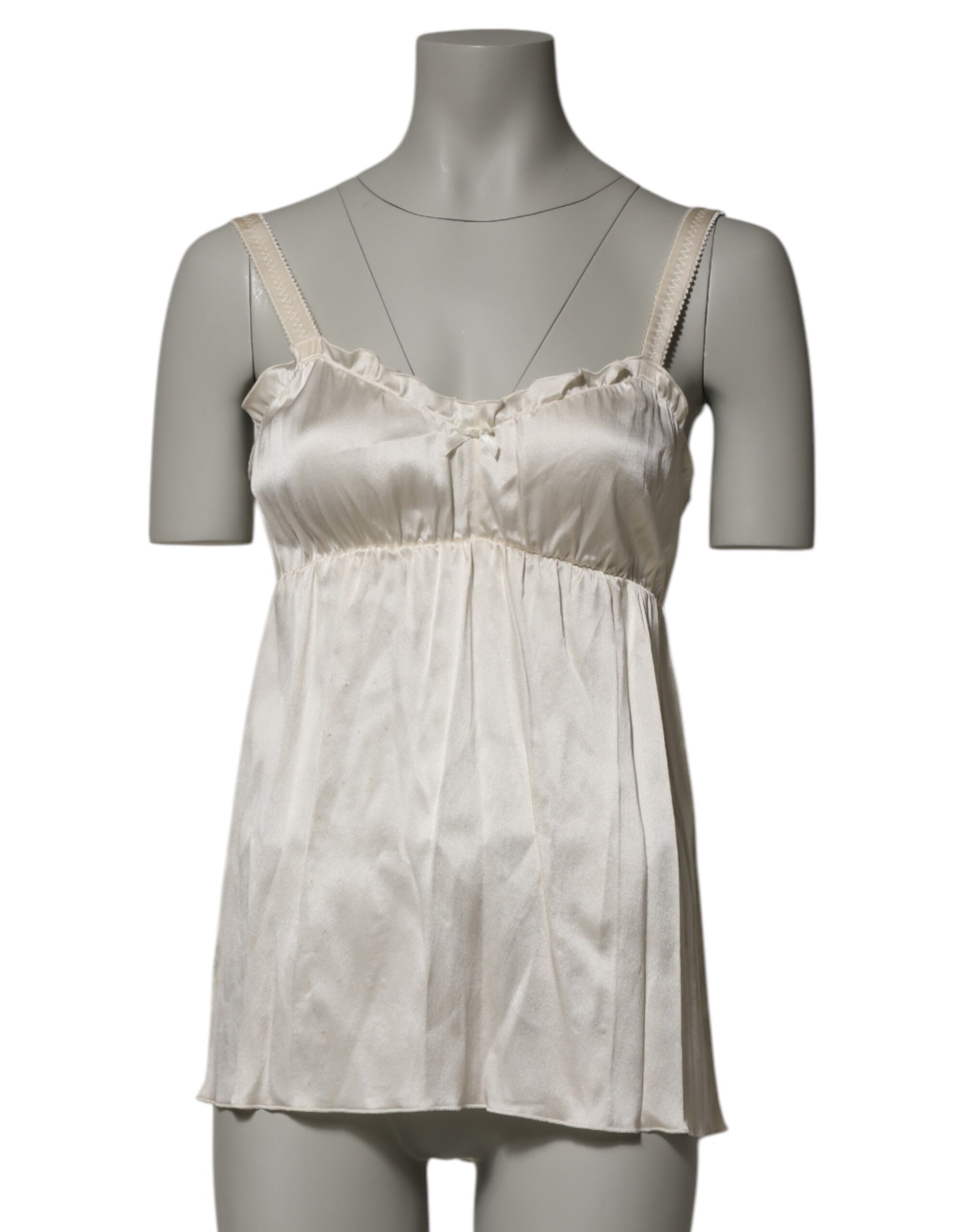 Gorgeous brand new, 100% Authentic Dolce & Gabbana lingerie tank top features smooth ivory satin with delicate lace trim for a romantic, sophisticated look. Perfect as intimate wear or styled as a chic layering piece.