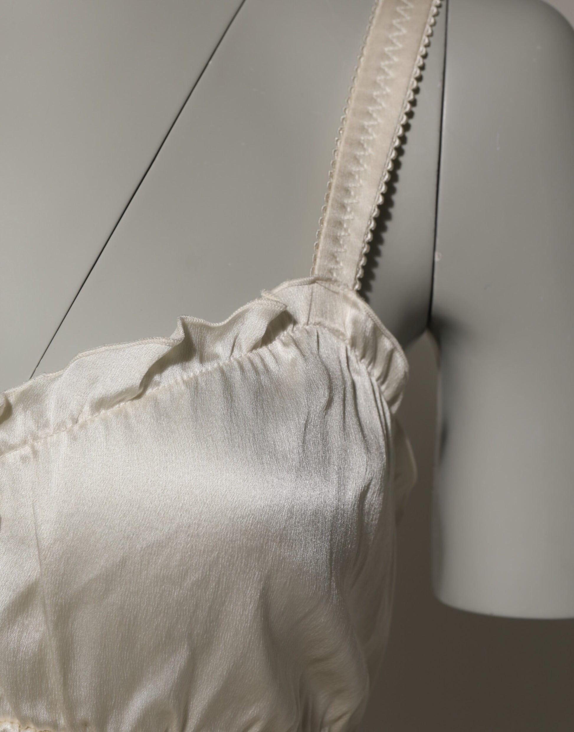 Ivory Satin Lace Tank Lingerie Top Underwear