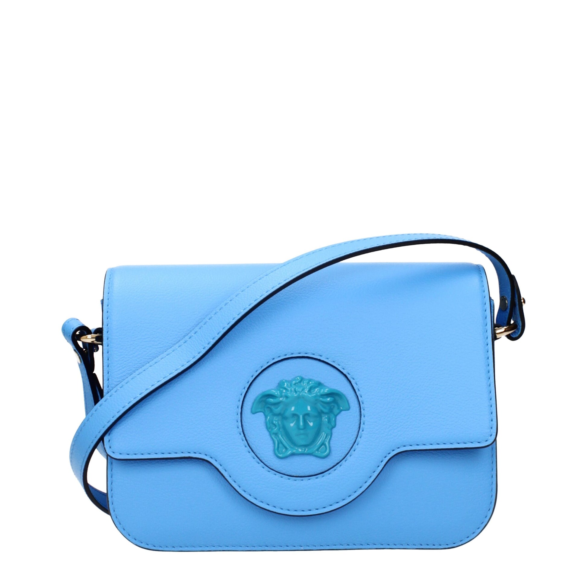 The product with MPN 1008100DVIT2T1U38V and code F84032 leather in heavenly is a crossbody bags designed by Versace. It has features like front detail, adjustable shoulder, removable shoulder.