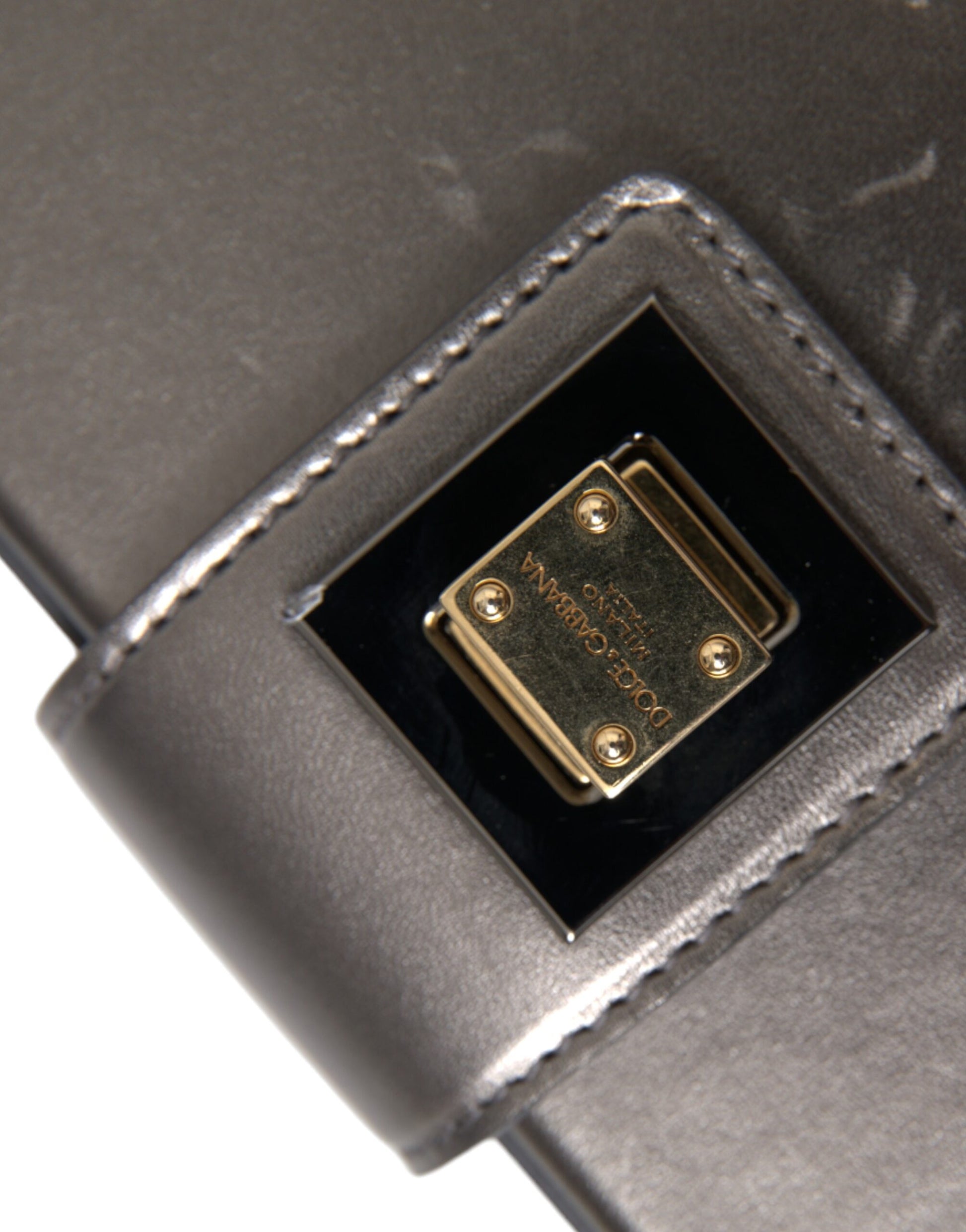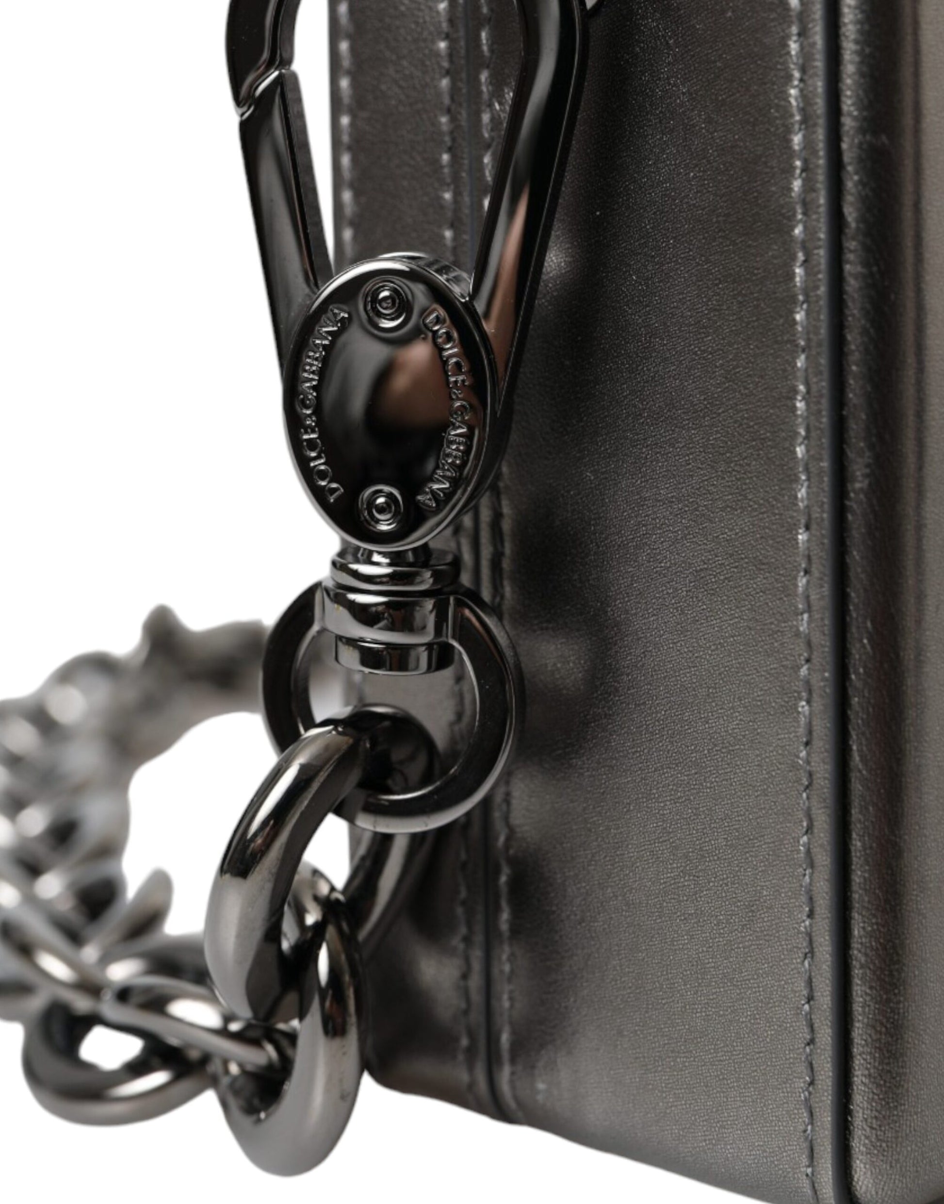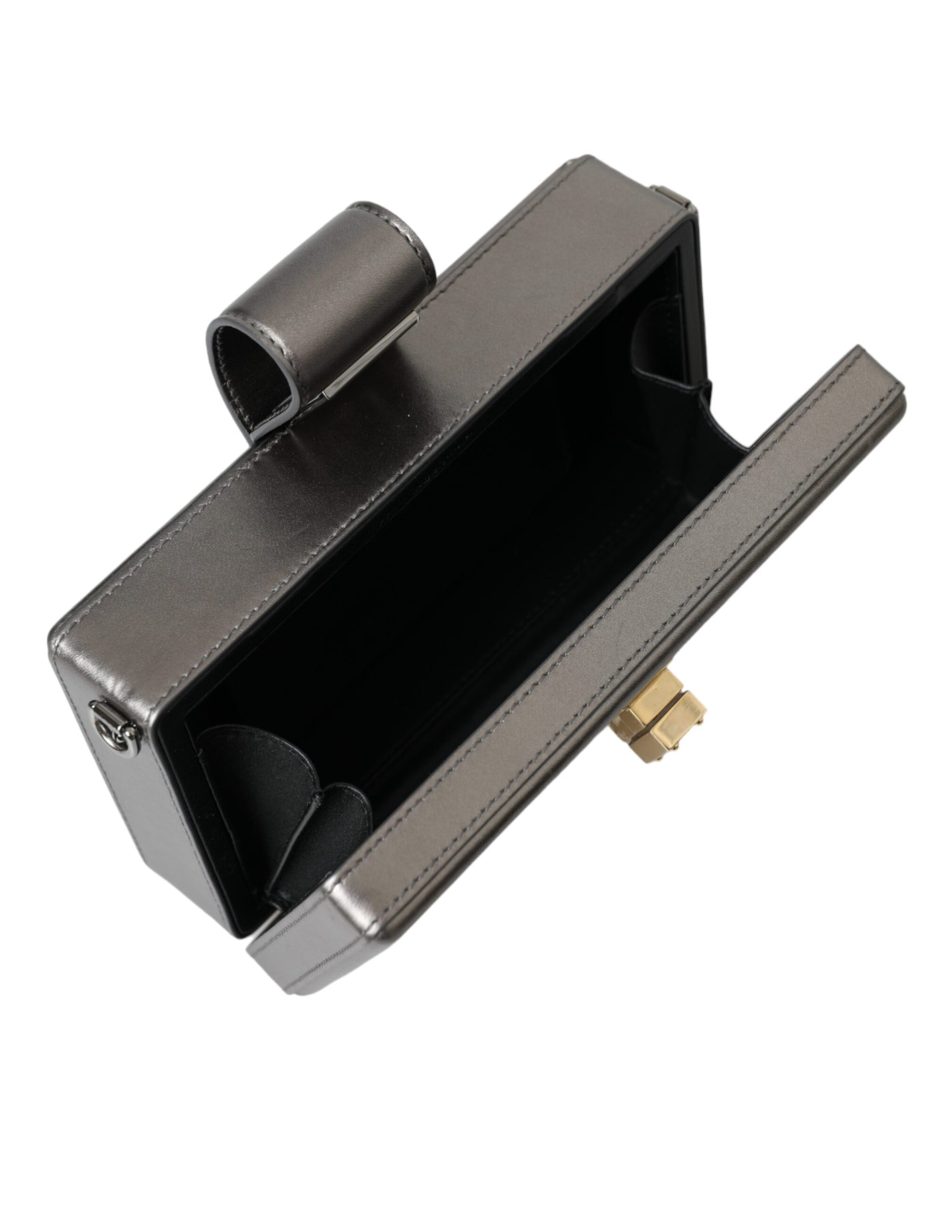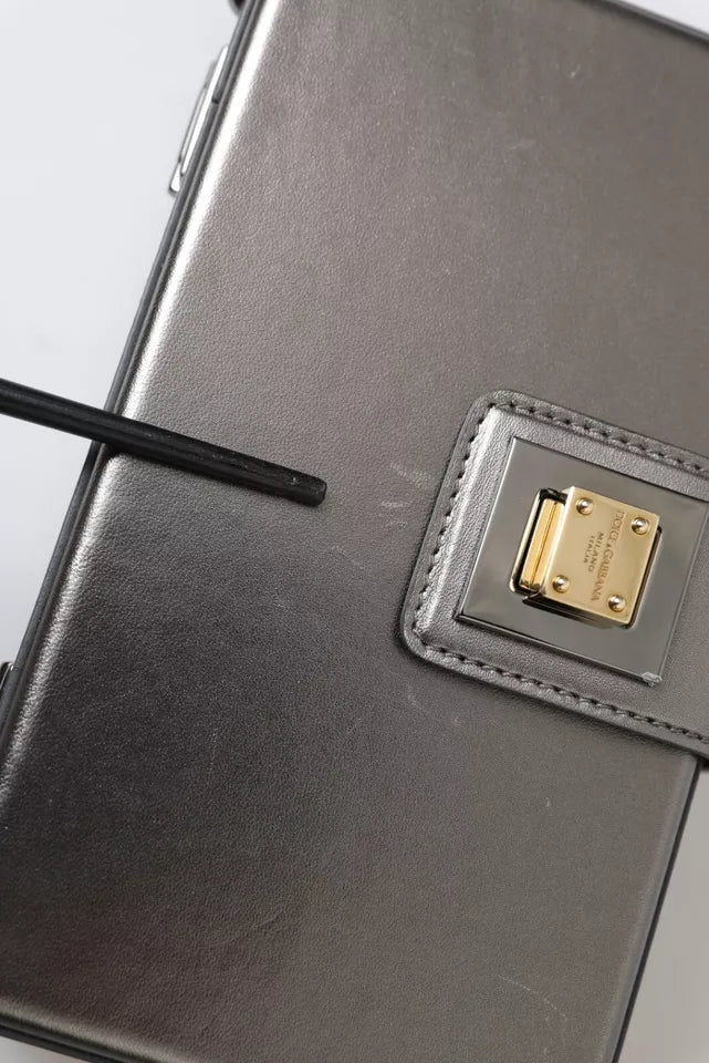 Metallic Gray Calfskin Leather DG BOX Shoulder Bag