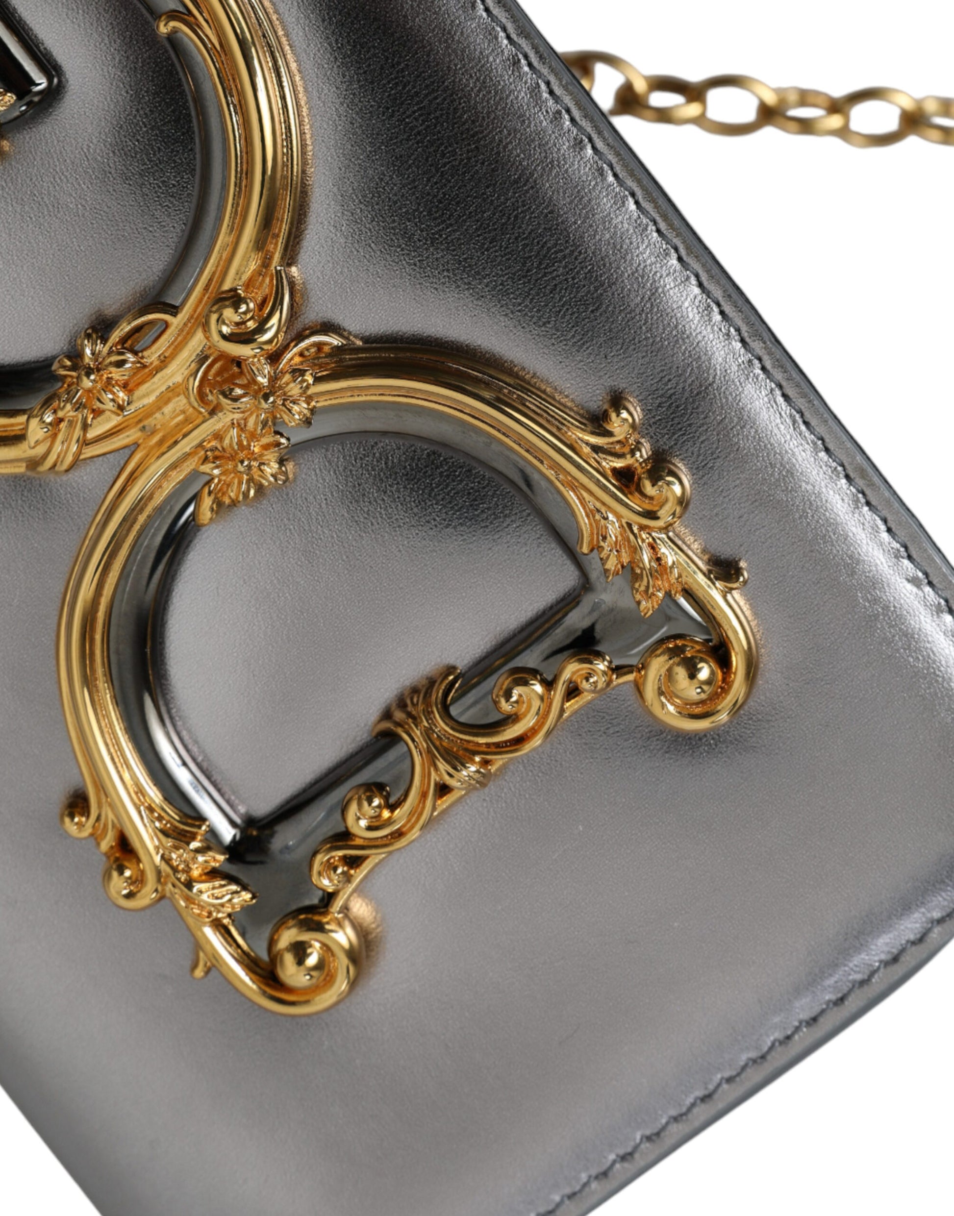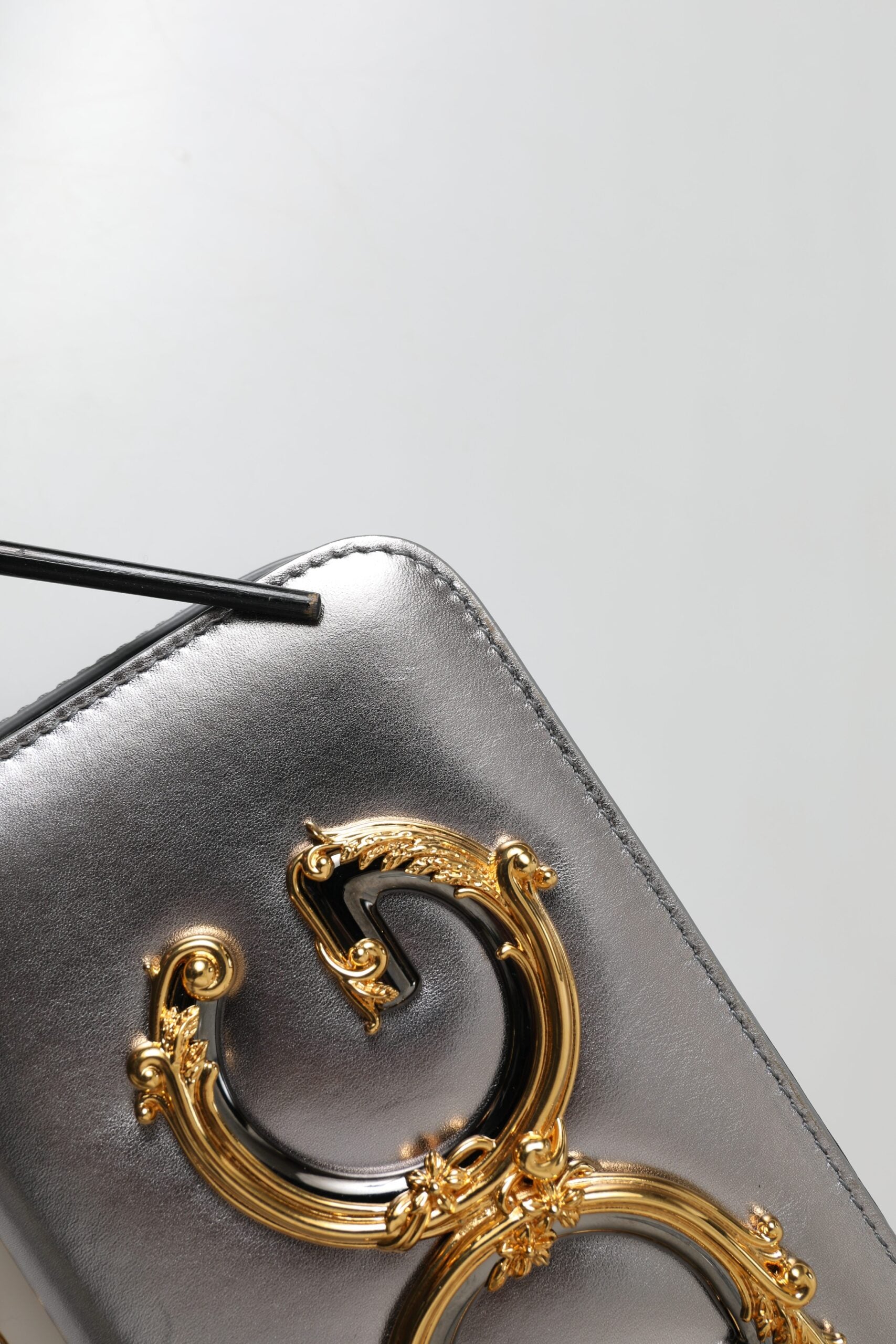 Gorgeous brand new, 100% Authentic Dolce & Gabbana mini shoulder bag. Crafted from metallic silver nappa leather, it features the iconic DG logo detail, exuding modern glamour. Compact yet chic, this statement piece is perfect for evening outings or adding a touch of luxury to everyday ensembles.