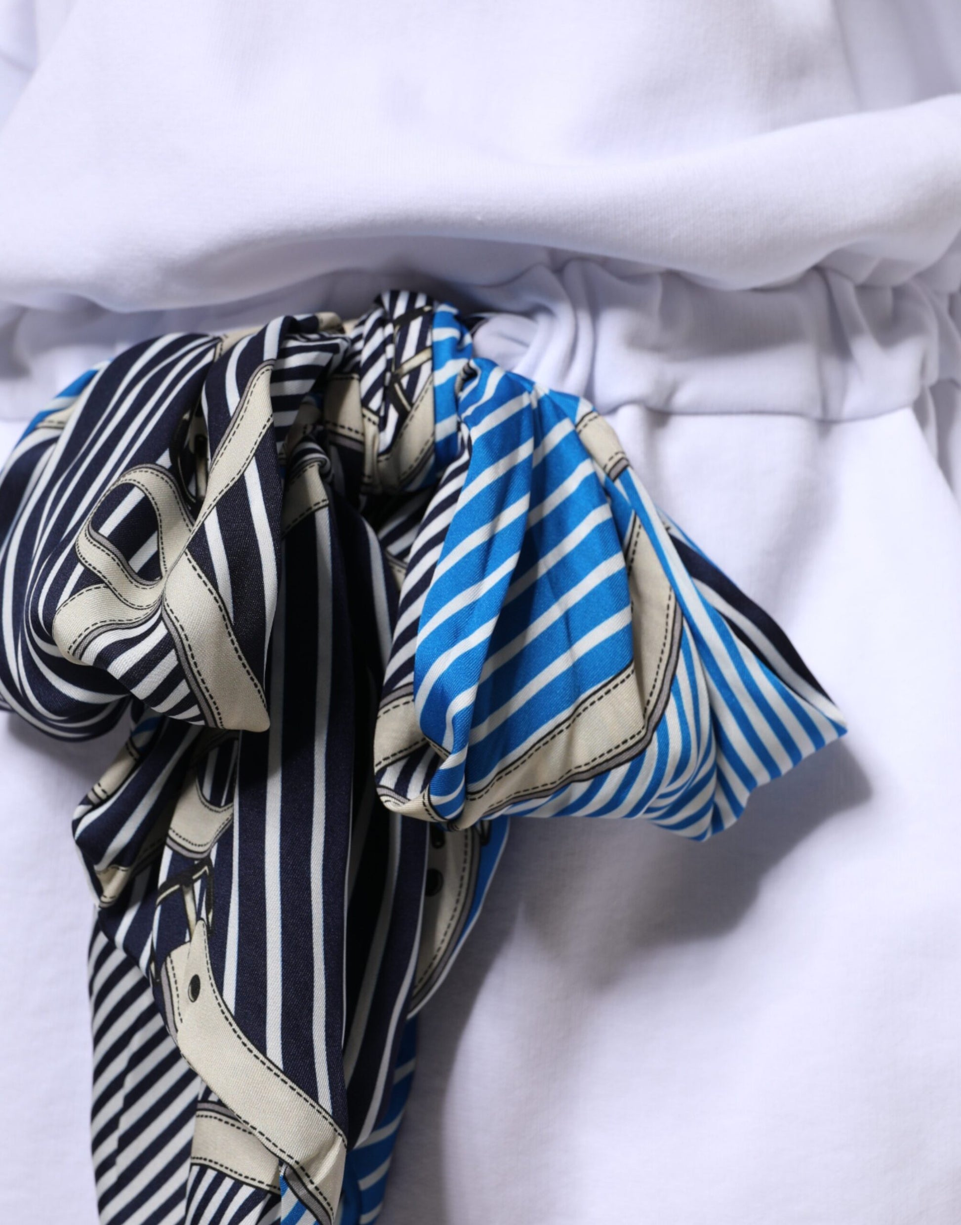 MSGM White Cotton Belted Long Sleeves Crew Neck Mini Dress