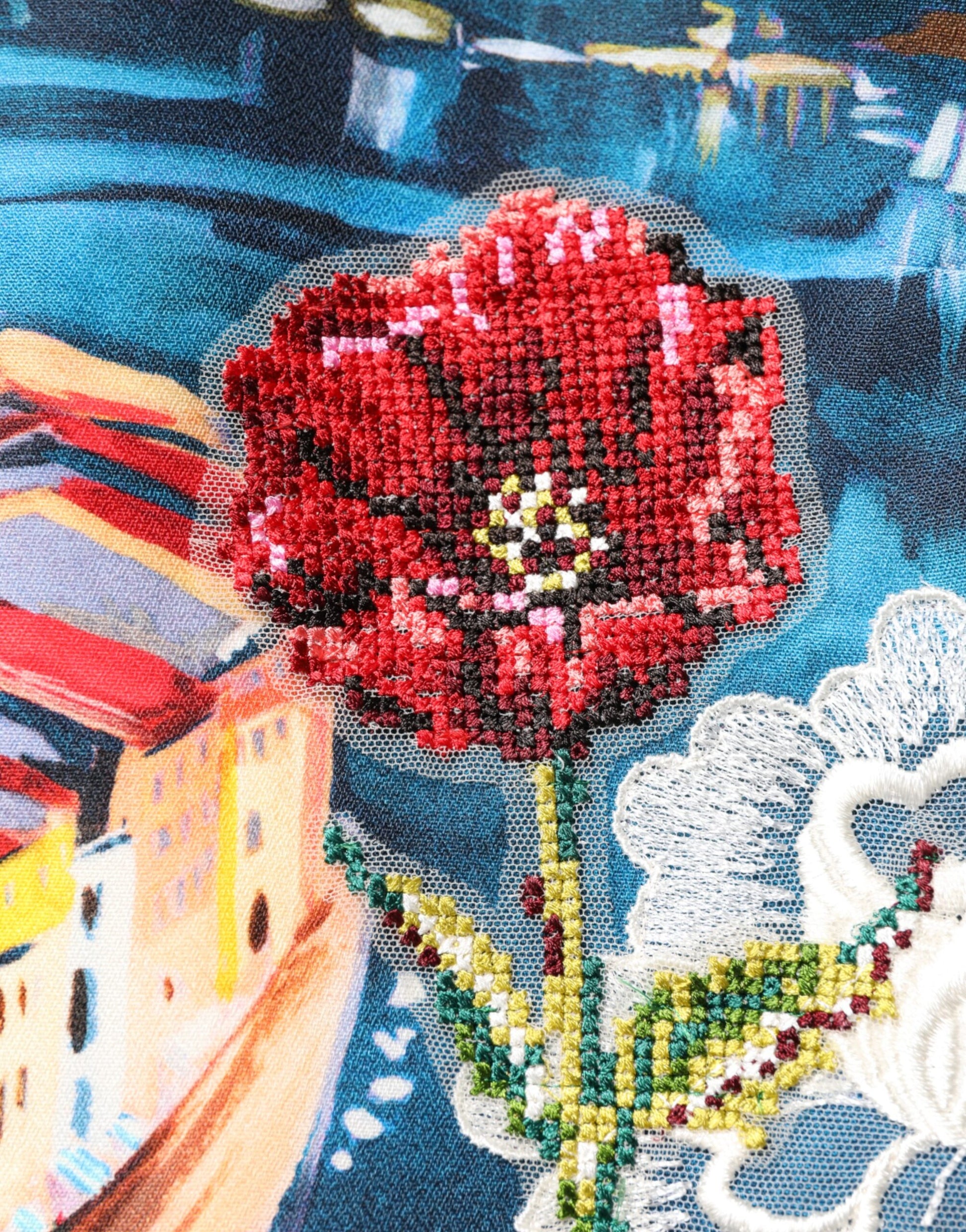Gorgeous brand new, 100% Authentic Dolce & Gabbana sleeveless mini dress with graphic print with crystal embellishment and floral crochet.