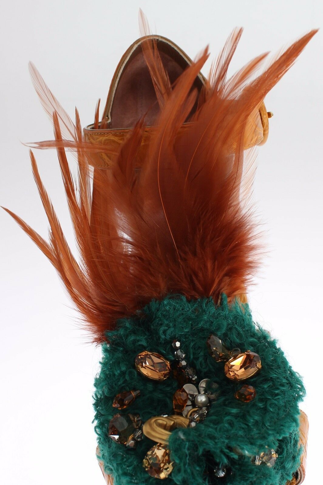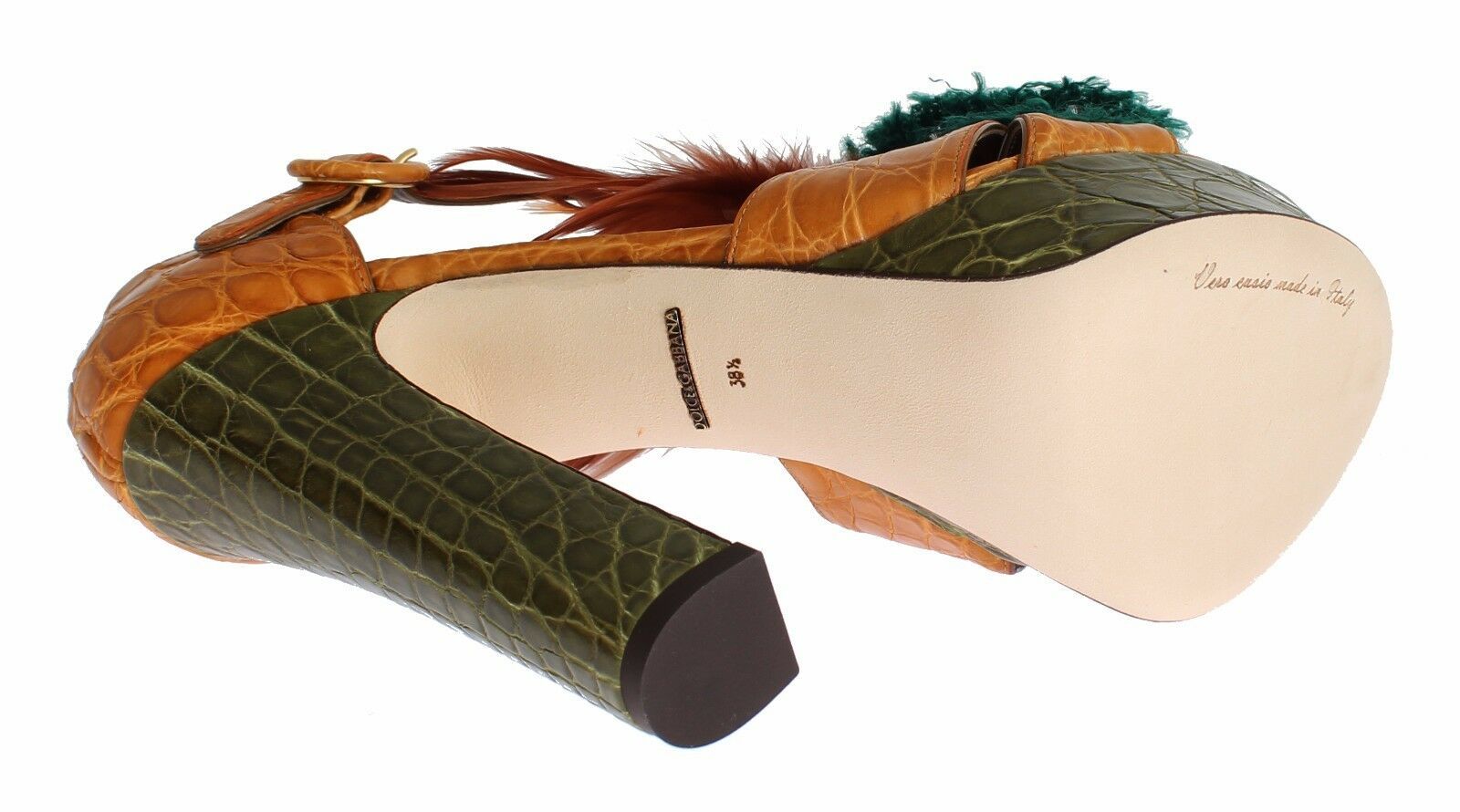 Dolce & Gabbana Orange Leather Crystal Platform Sandal Shoes