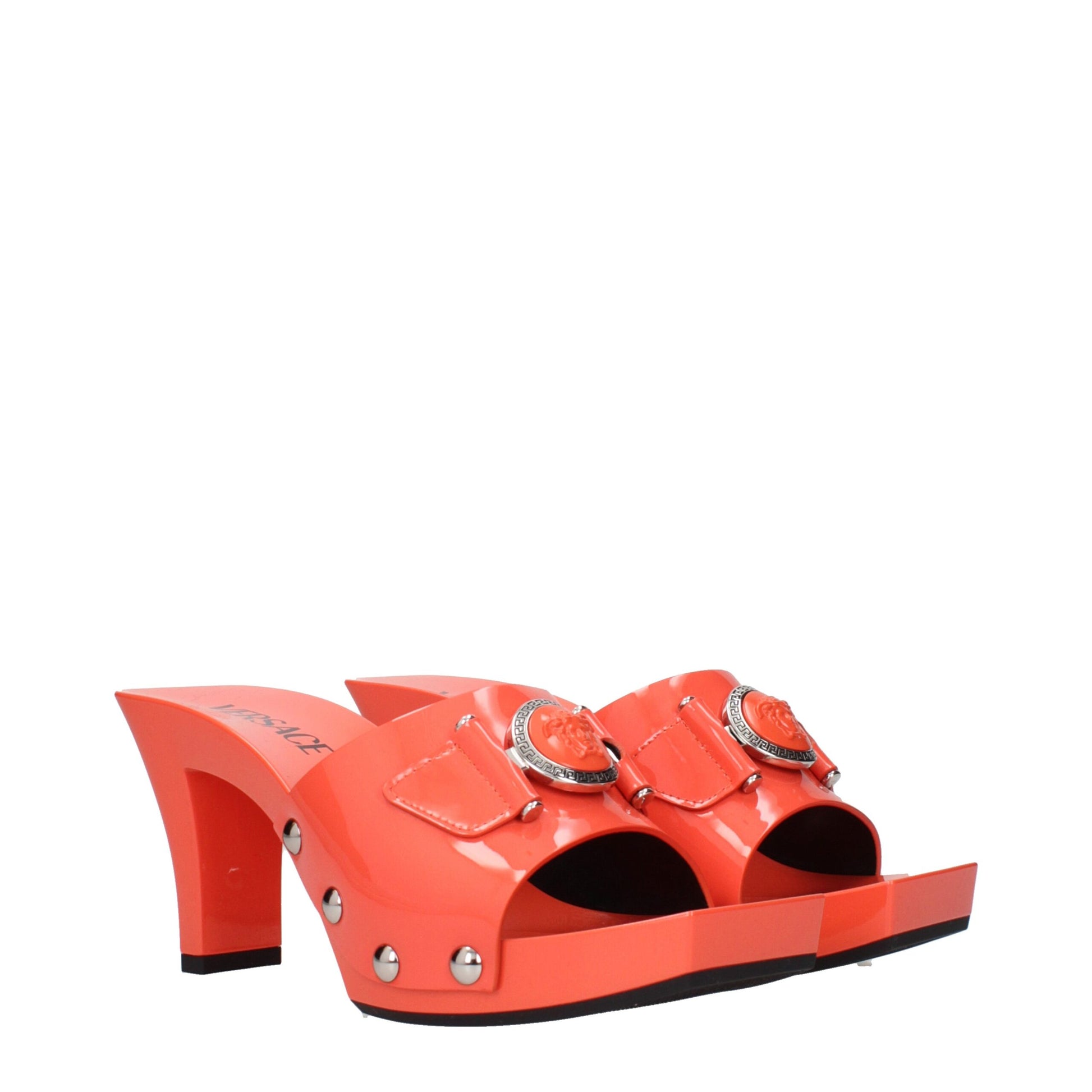 The product with MPN 1014369D2VE1RA8P and code F84170 patent leather in orange is a sandals designed by Versace. It has features like front detail.