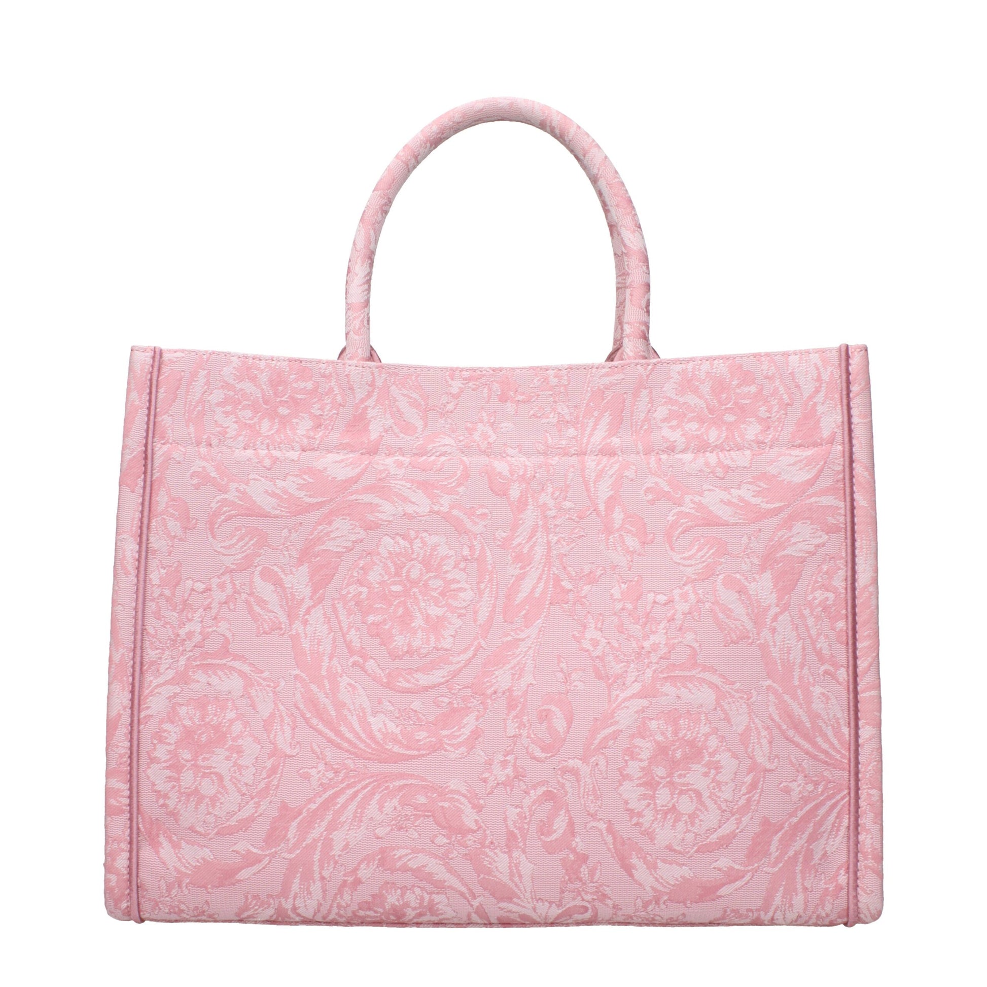 The product with MPN 10115621A097412PQ2V and code F82407 fabric in pink is a handbags designed by Versace. It has features like front logo, embellishment may vary, adjustable shoulder, removable shoulder.