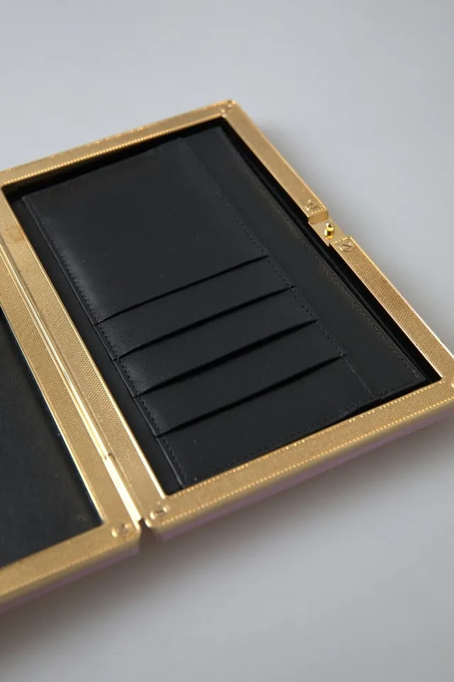 Gorgeous, 100% Authentic Dolce & Gabbana miniature clutch, pink model, covered with dense moire silk. The minaudière is closed with a golden frame lid.