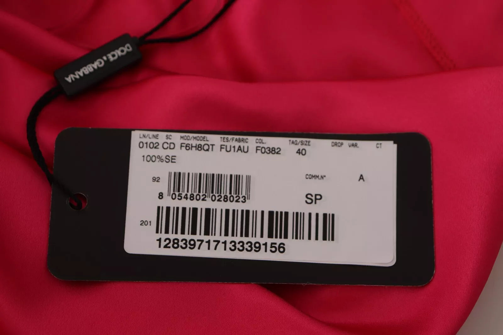 Dolce & Gabbana Silk Pink Fitted Cut One Shoulder Midi Dress