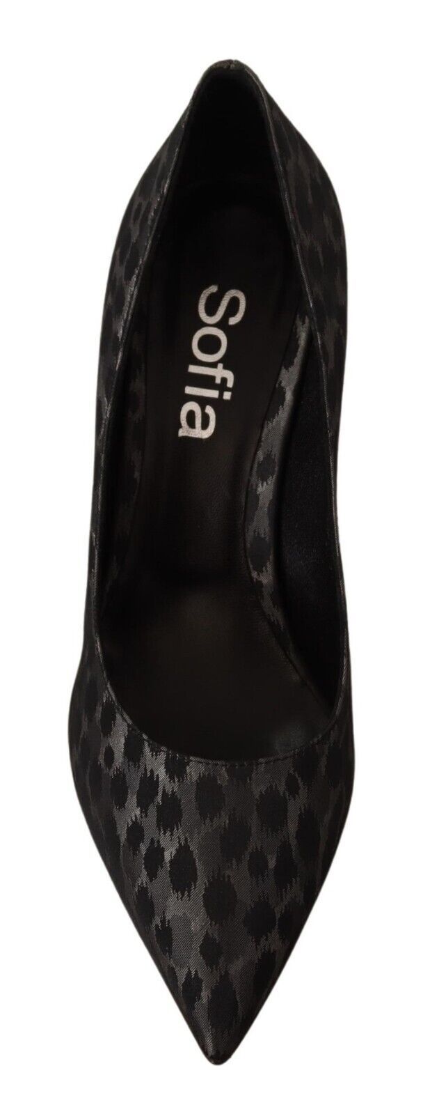 Sofia Black Leopard Leather Stiletto High Heels Pumps Shoes