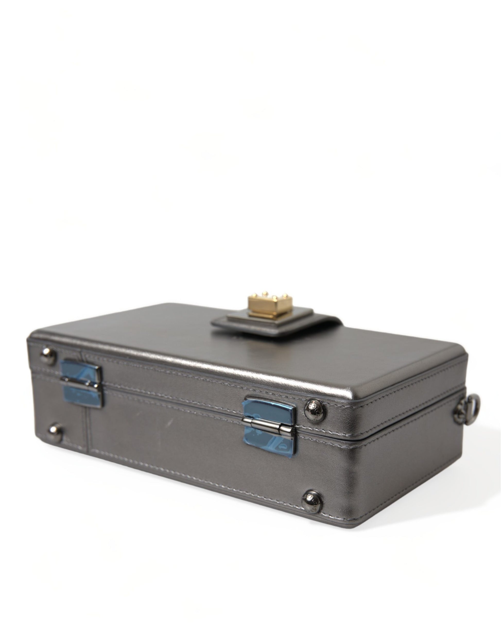 Dolce & Gabbana Steel Gray Leather Box Shape Shoulder Gold DG Logo Plaque Bag