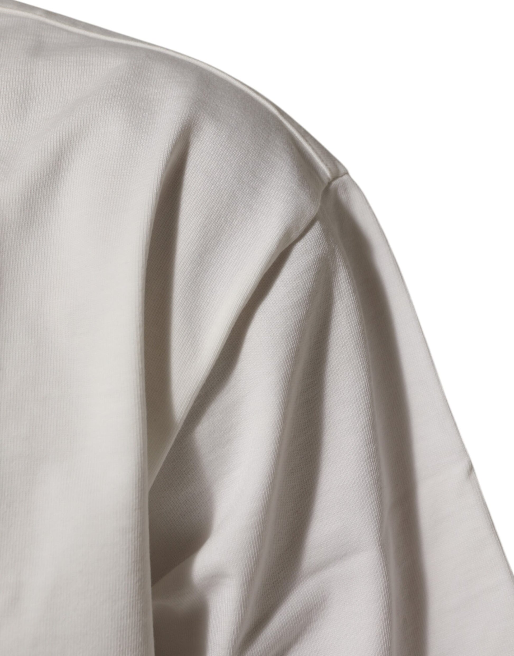 T-shirt is a timeless essential with a designer edge. Crafted from soft white cotton, it features a classic crew neck and a comfortable regular fit. The bold logo print across the front adds a signature statement, making it perfect for pairing with jeans, shorts, or layered looks for effortless style.