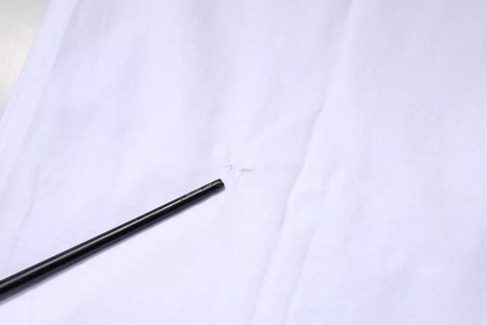 This item has a minor defect, there are stains on the front side and repaired hole, pulled threads on the back side (see pictures for details).