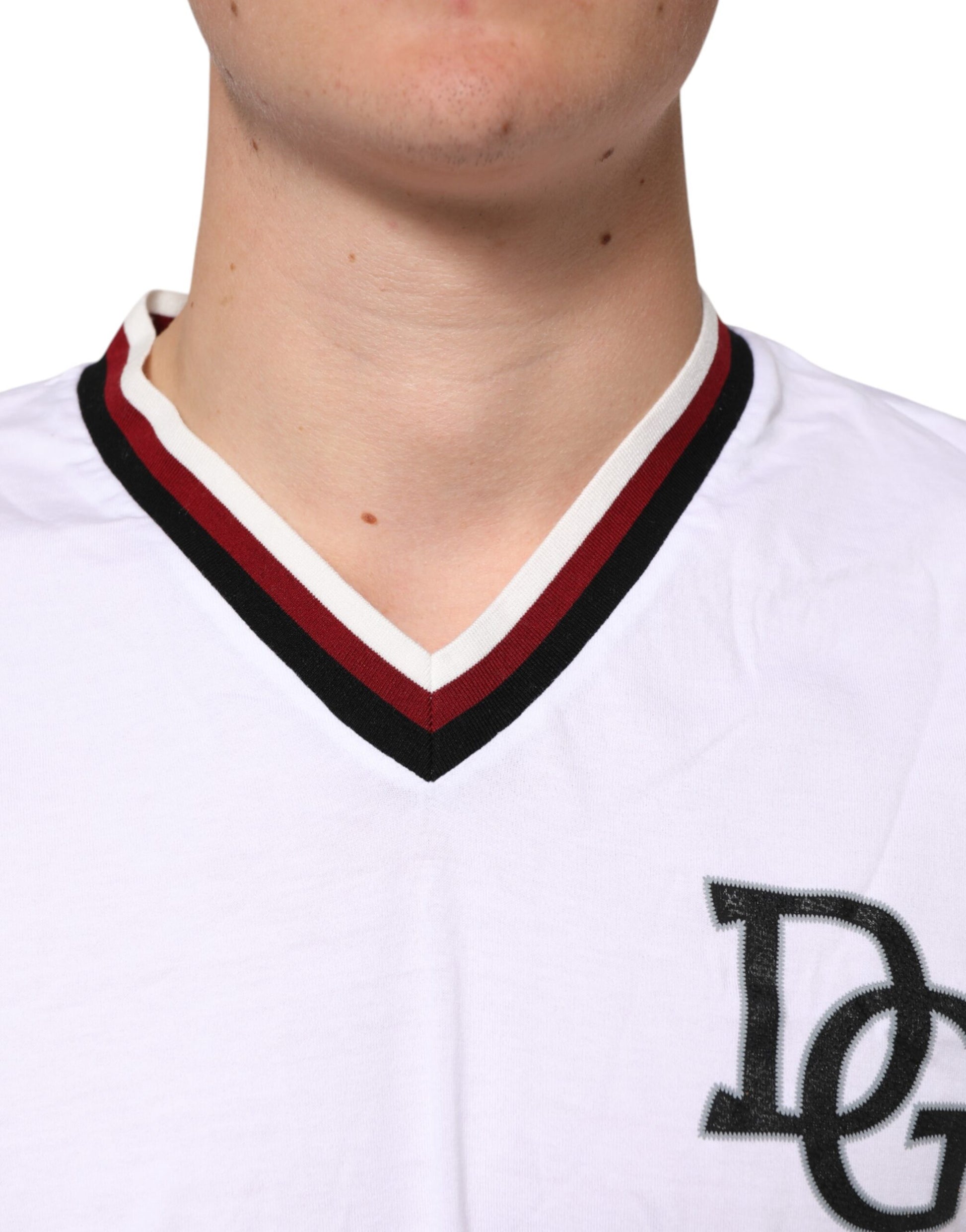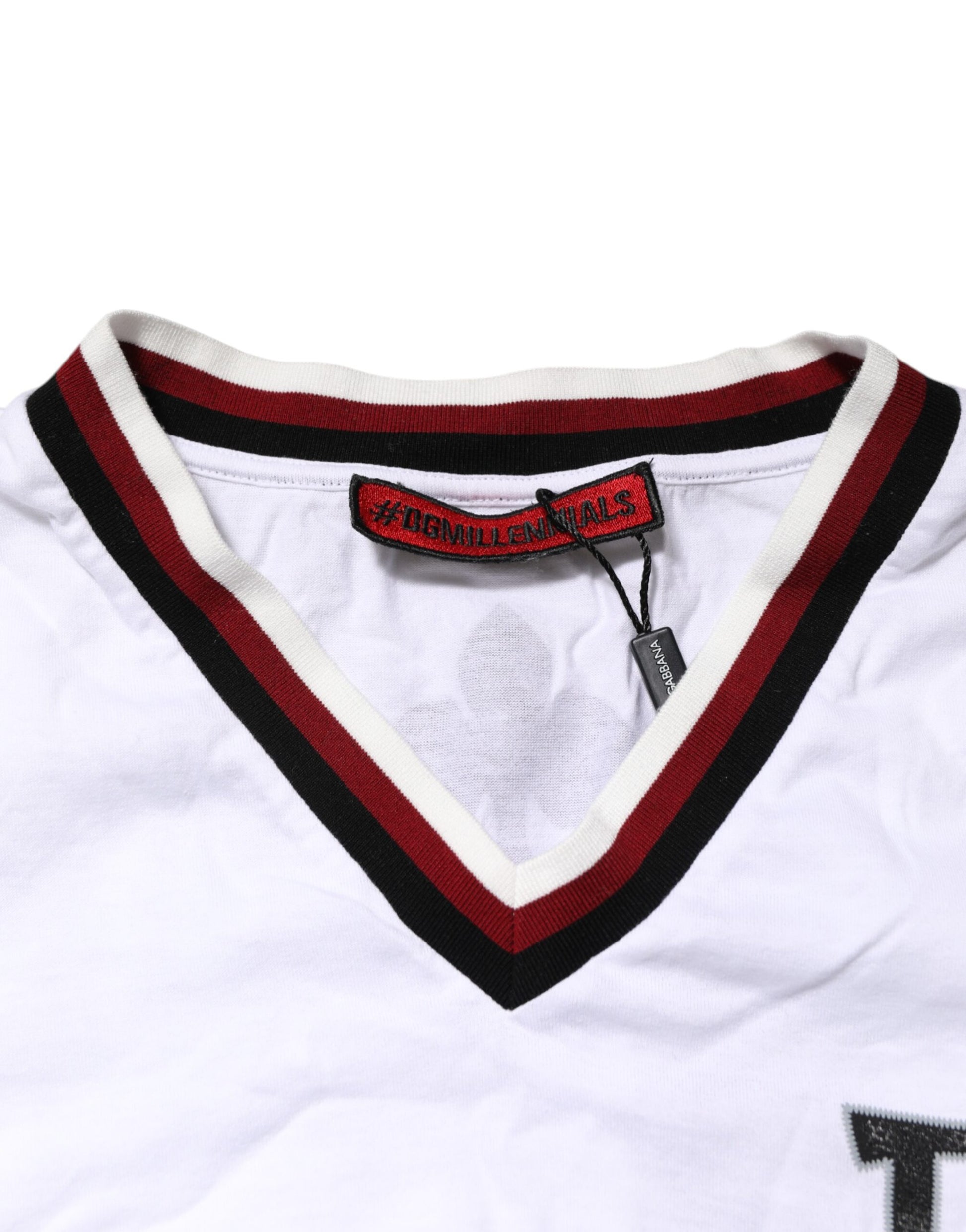 Gorgeous brand new, 100% Authentic Dolce & Gabbana V-neck T-shirt in classic optical white. Crafted from 100% premium cotton, this piece features the standout #DGMillennials King Crown logo embroidered at the front, a nod to bold elegance and youthful spirit.