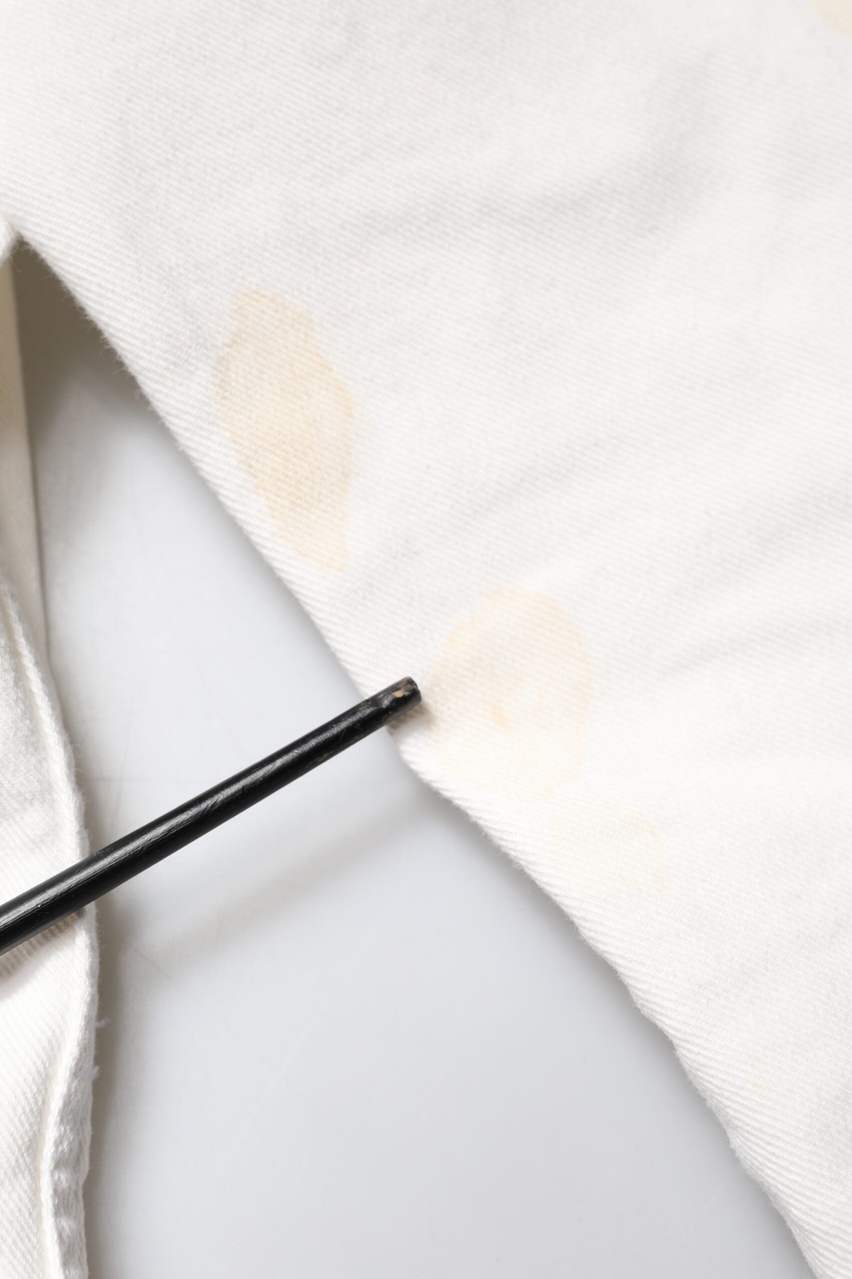 This item has a minor defect, there are stains on the front and back side (see pictures for details).