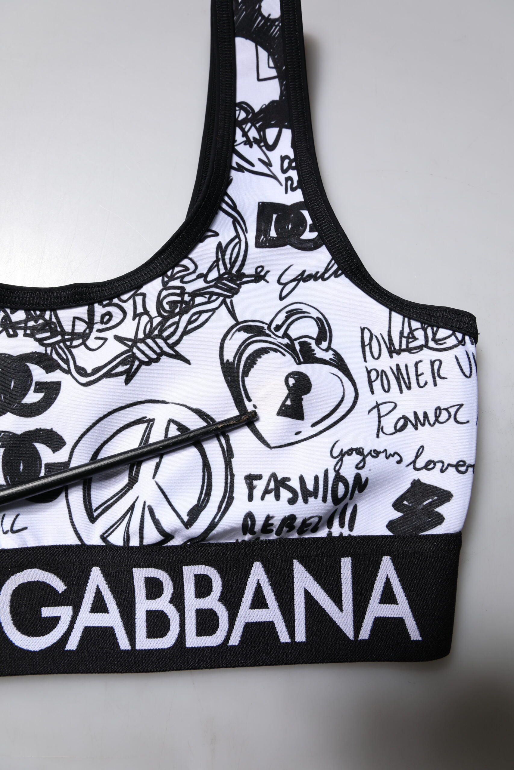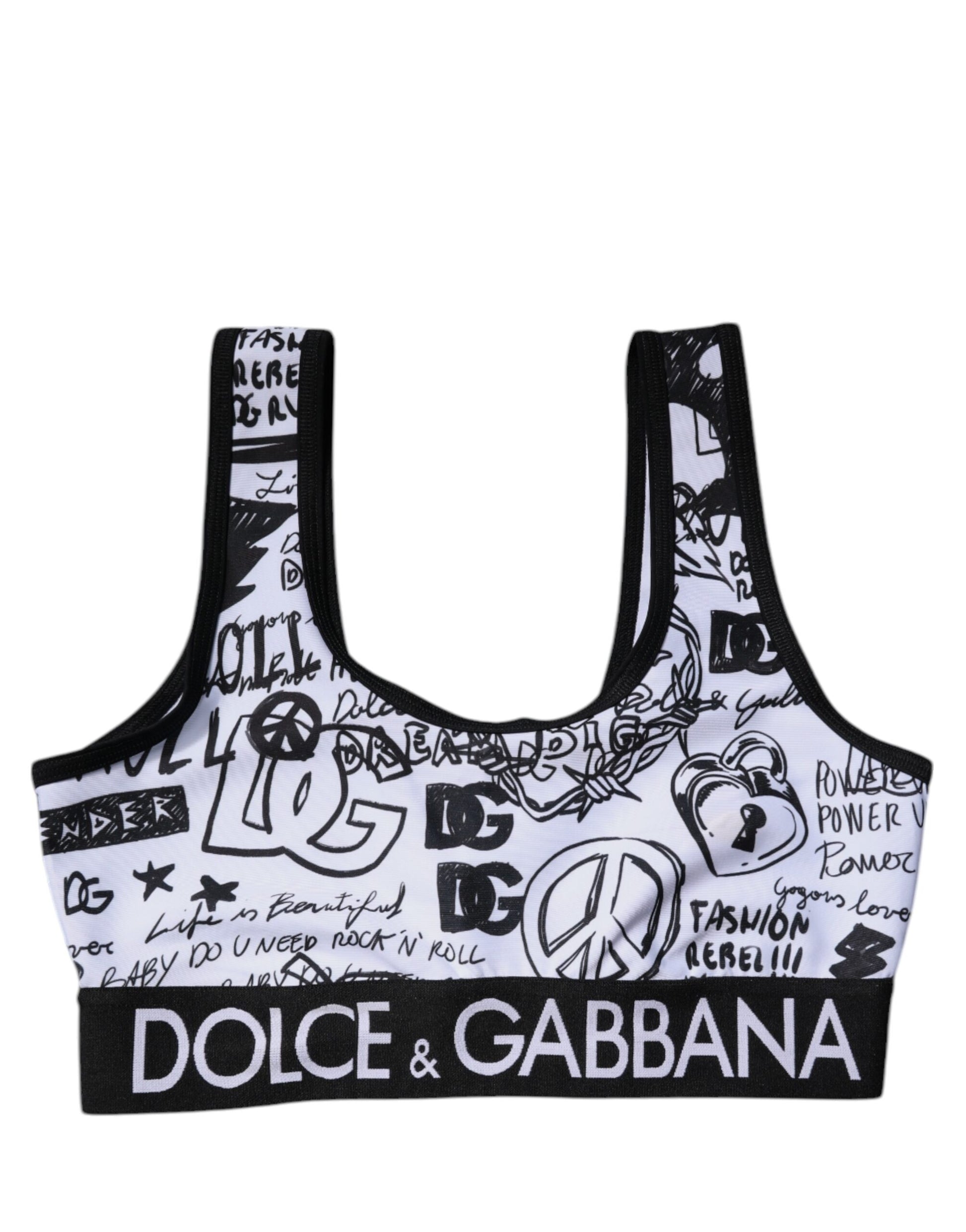 Gorgeous brand new, 100% Authentic Dolce & Gabbana graffiti print logo band sports bra in white