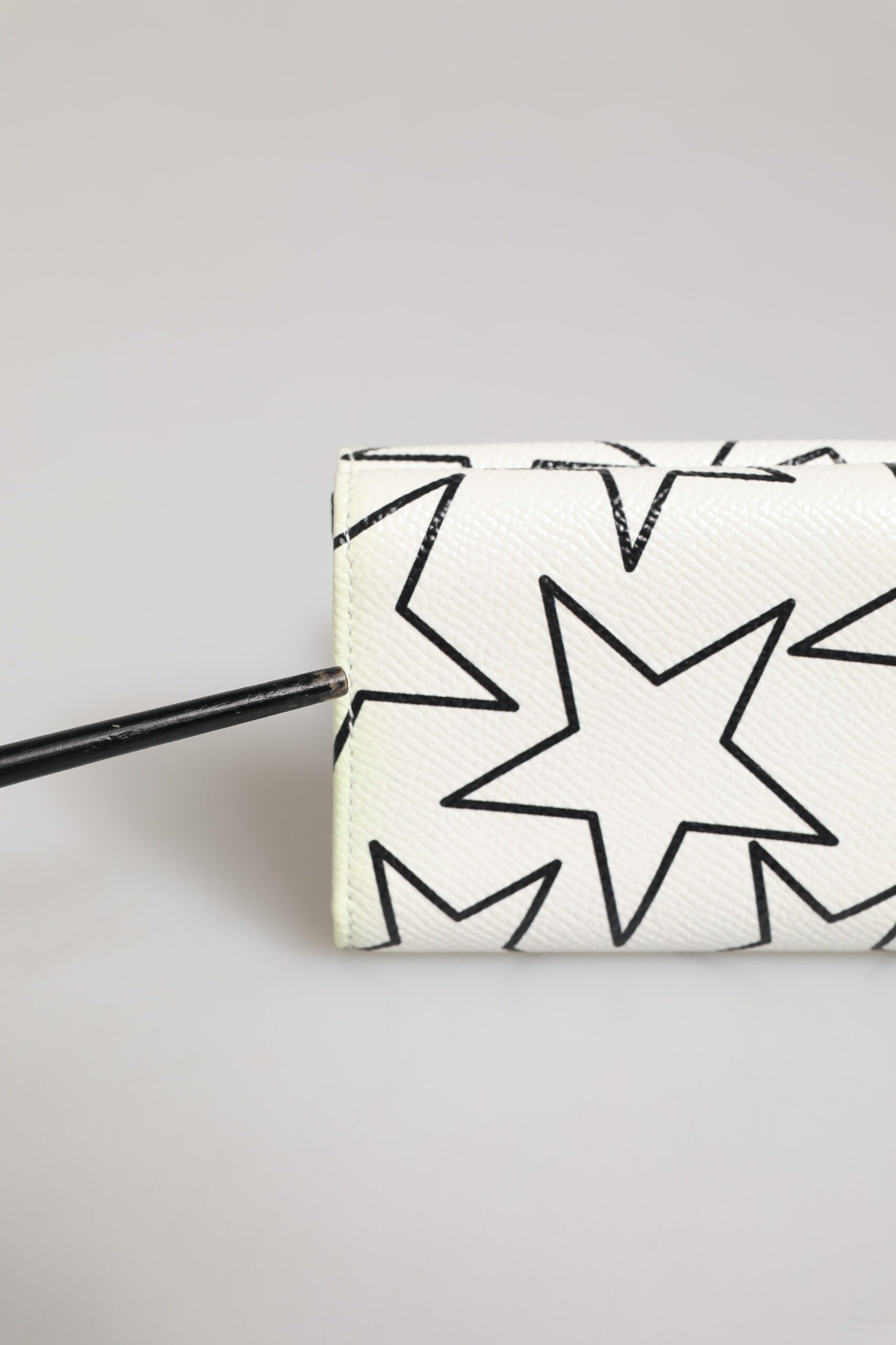 rifold wallet, crafted in Italy from premium textured leather. Featuring a bold black star print on a crisp white background and the iconic Dolce & Gabbana script logo, this compact wallet makes a fun yet sophisticated statement.