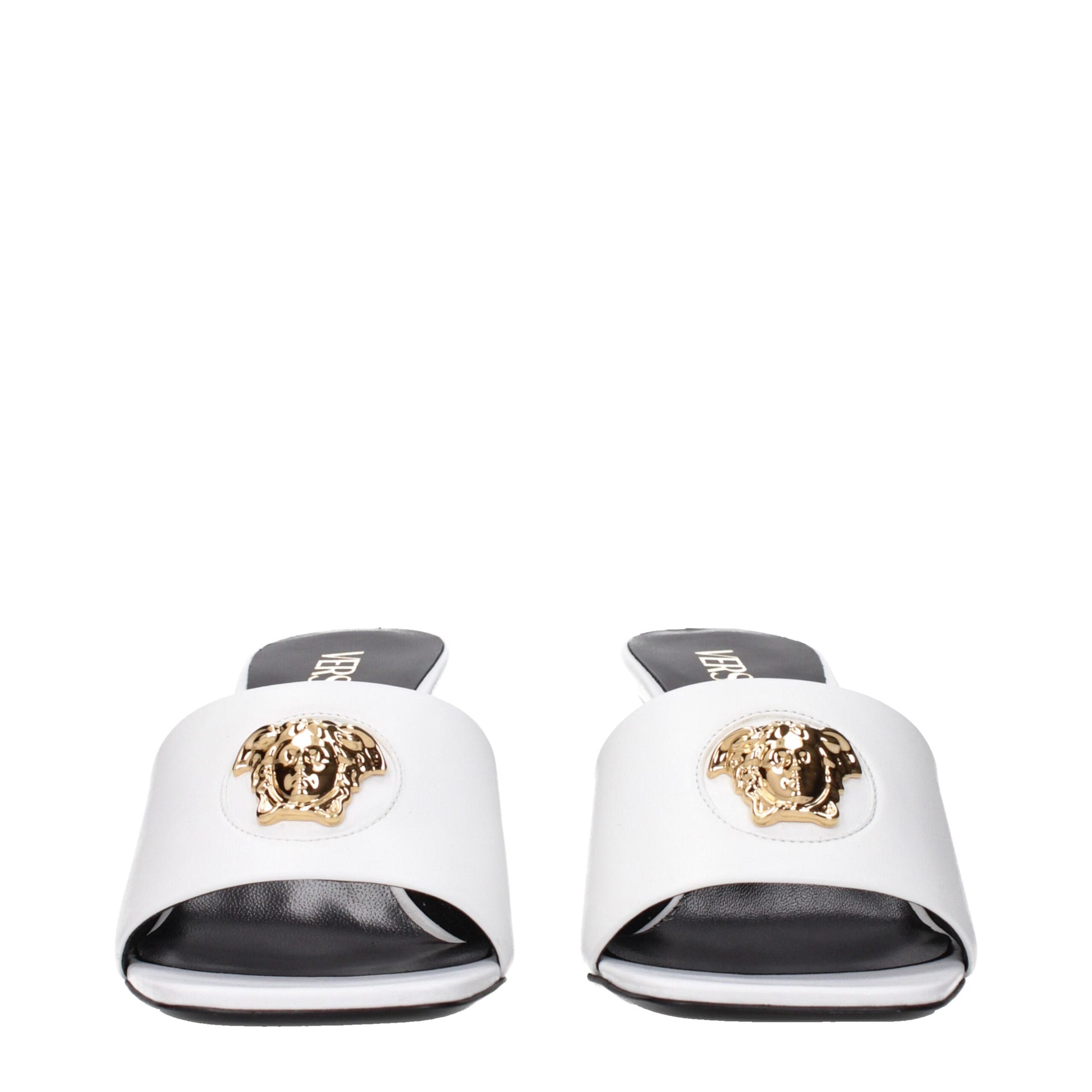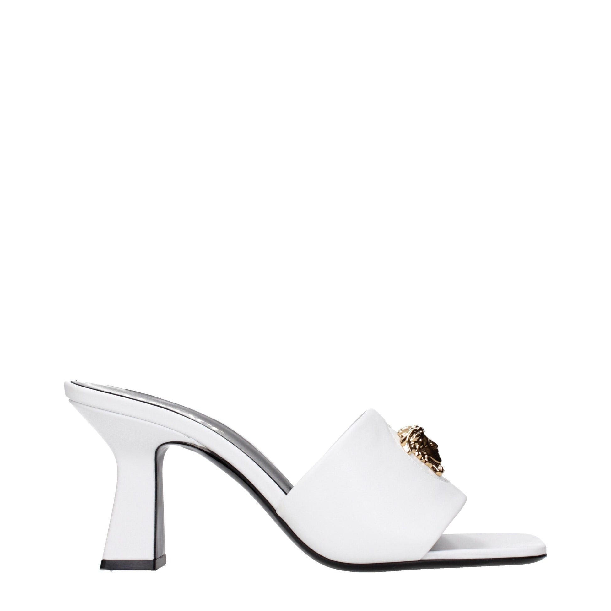 The product with MPN 10192311A020871W00V and code F83950 leather in white is a sandals designed by Versace. It has features like front detail.
