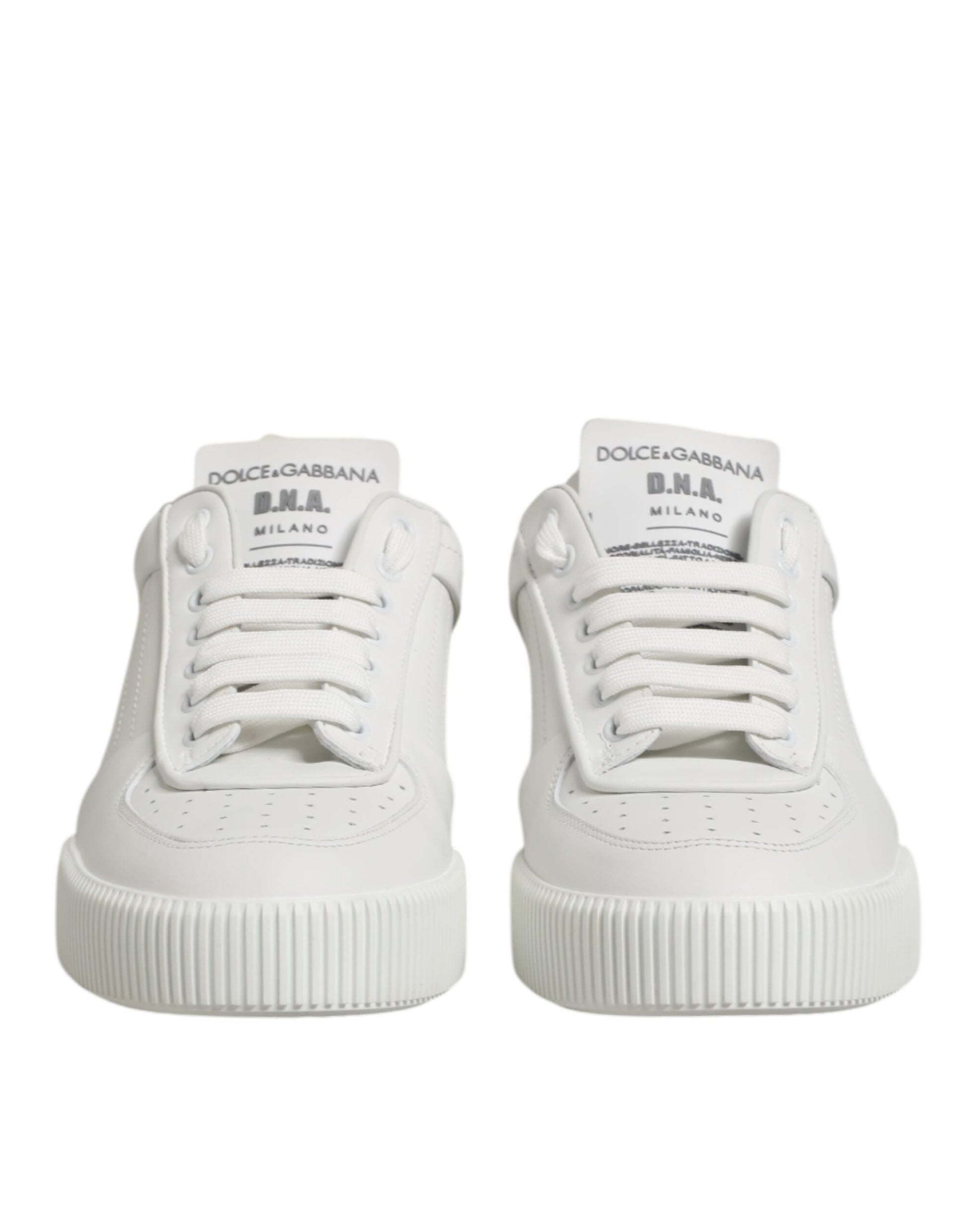 Gorgeous brand new, 100% Authentic Dolce & Gabbana Miami sneakers, crafted from smooth white leather for a timeless finish. Featuring a low-top silhouette, lace-up closure, and comfortable rubber sole, they deliver a sleek and versatile style perfect for everyday wear.