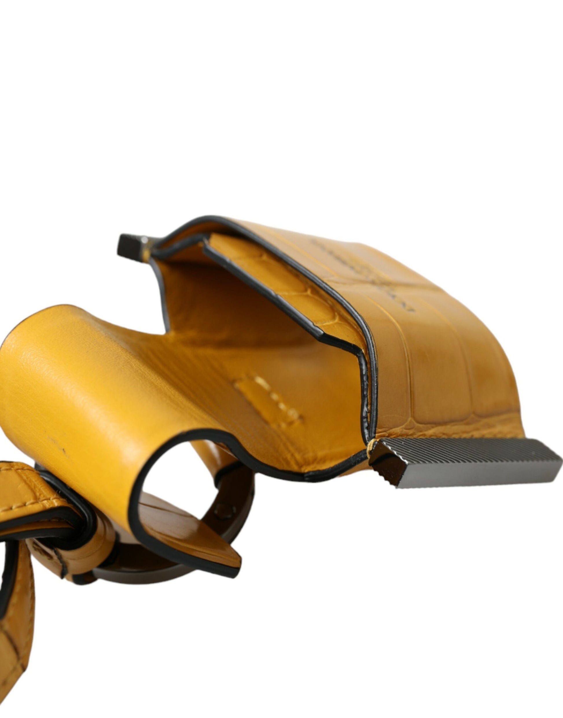 Yellow Crocodile Leather Logo Print Lanyard Keychain